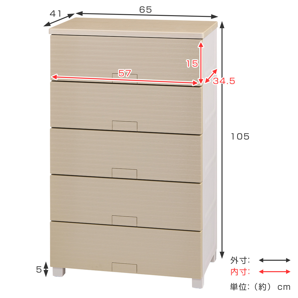 | サイズ | 約 幅65×奥行41×高さ105(cm) 引出内寸:約 幅57×奥行34.5×高さ15(cm) |
