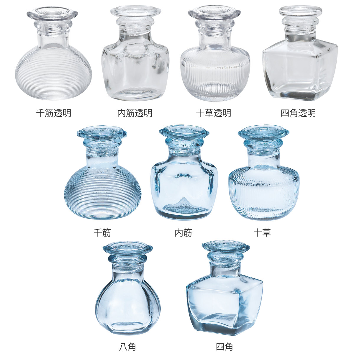 | 種類 | 千筋透明、内筋透明、十草透明、四角透明、千筋、内筋、十草、八角、四角 |