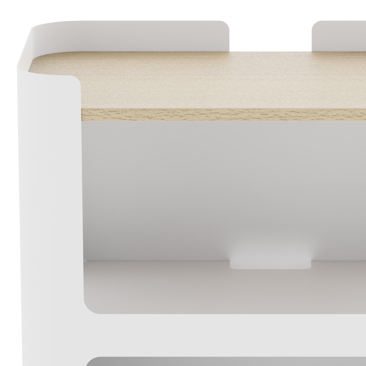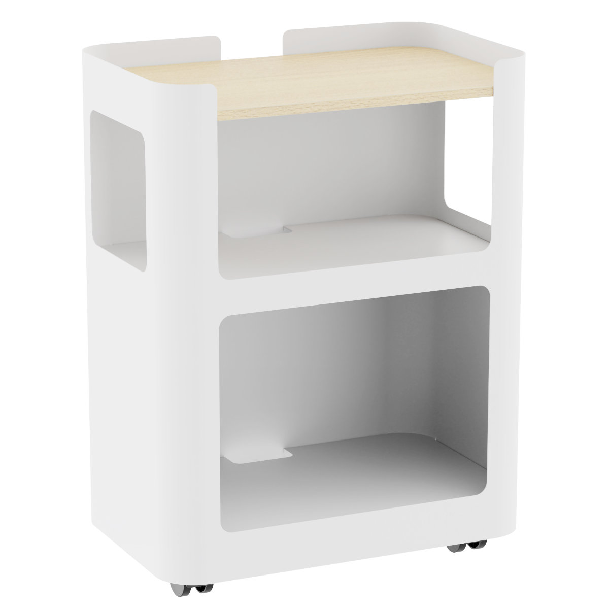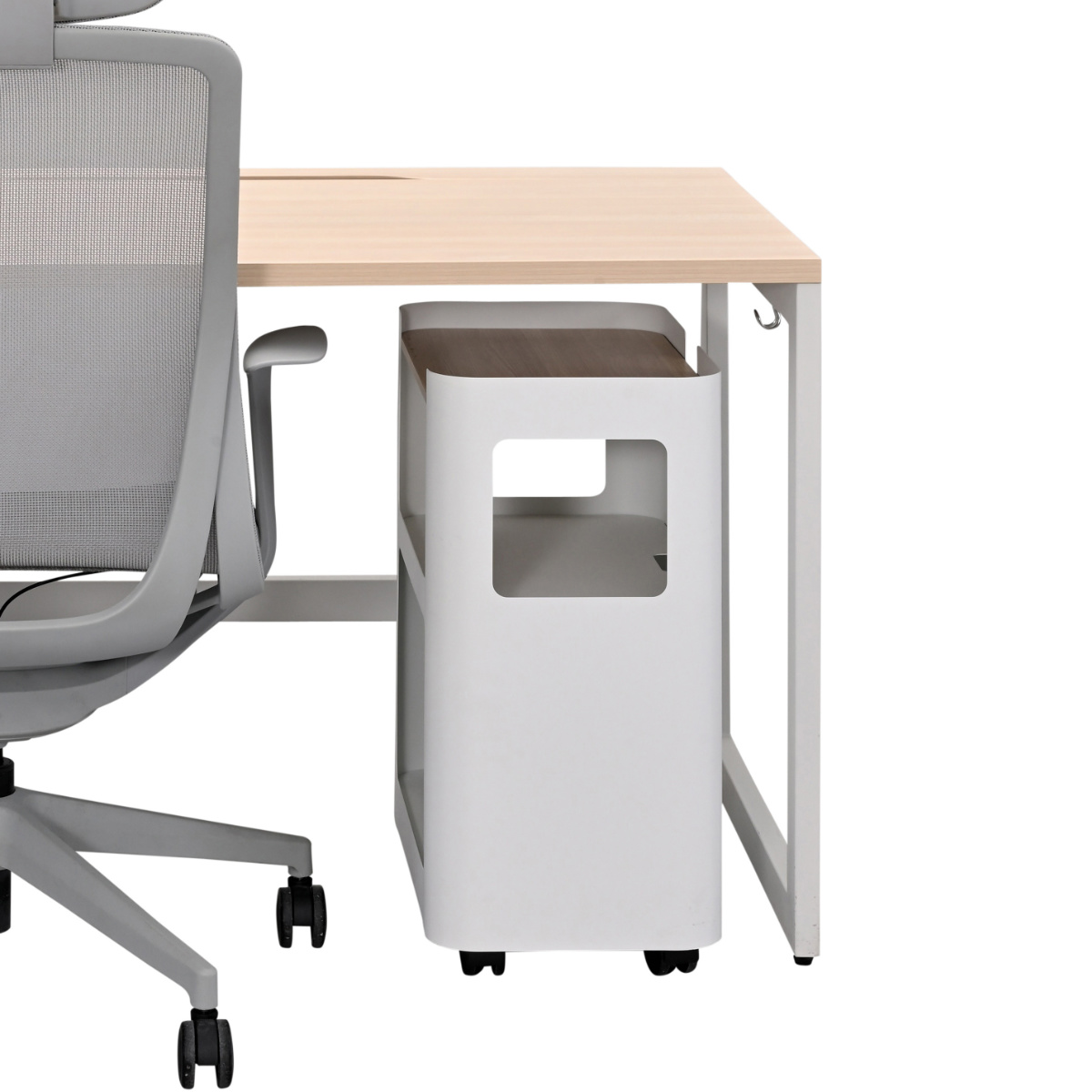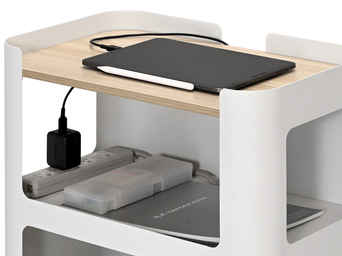 デスク下やサイドにすっきり収まる、機能的な3段収納ワゴン。丸みを帯びたフォルムとスマートな設計で、オフィスや在宅ワークの整理整頓に活躍します。耐荷重20kgのため、軽量なオフィス用品や書類の整理、補助テーブルとしても役立ちます。