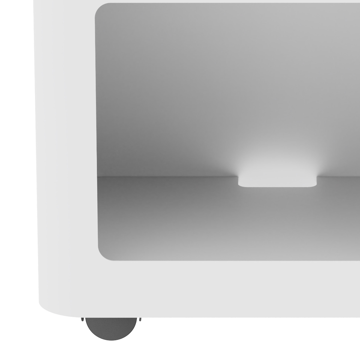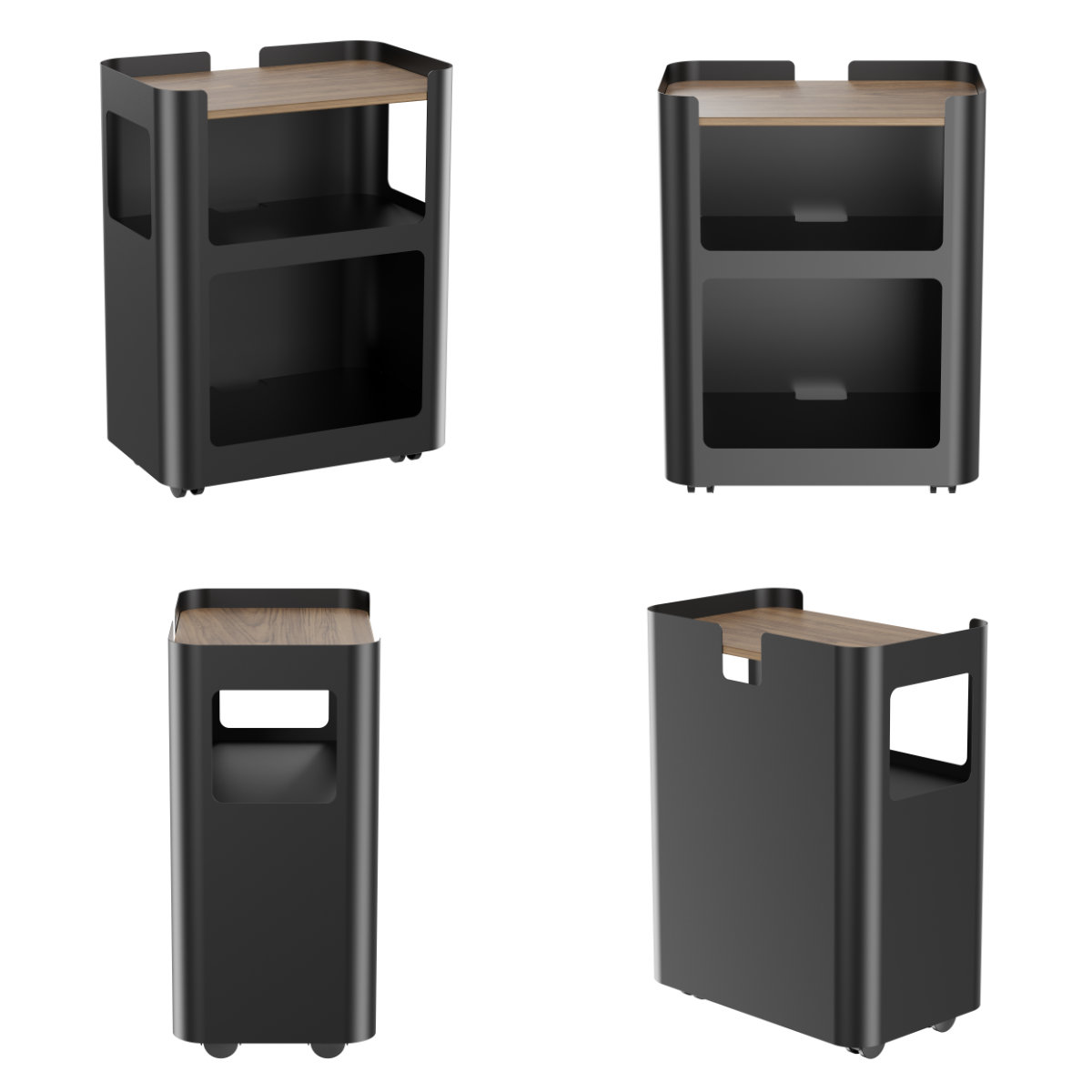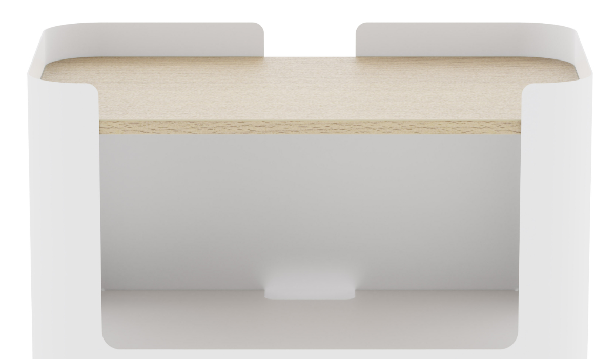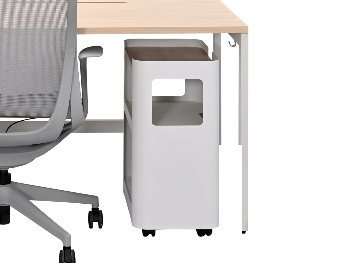 天板と側面に設けられた立ち上がり(縁)が、小物や書類などの滑落をしっかりガードします。キャスターで軽く移動しても、ふとした弾みにモノが床に散らばる心配がありません。