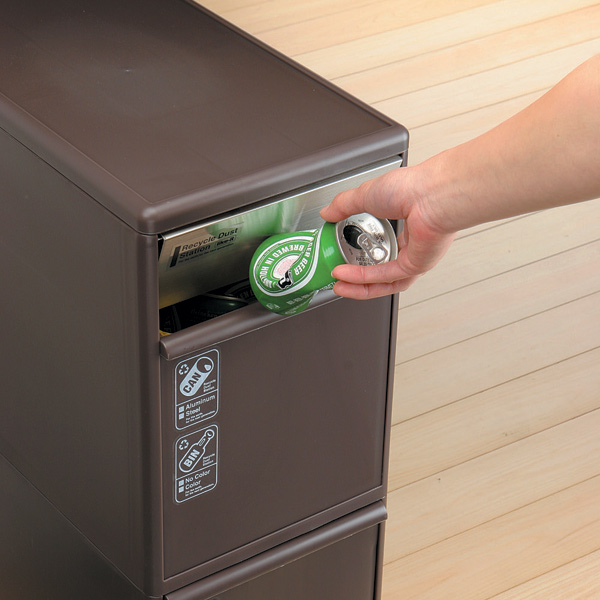 キッチンの空間を有効に使える、家具感覚のスマートな分別ダストボックスです。冷蔵庫やシンク・食器棚の横など、キッチンのデッドスペースに置くことができます。ゴミ箱を積み重ねたような縦型タイプ。種類別にゴミ箱を用意しなくても、これ1台ですっきりと収まります。