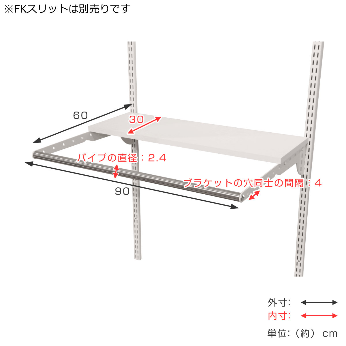 | 内容量 | 棚板×1枚、ブラケット×2枚 棚受(取付ビス共)×4個 落下防止ストッパー(大)×2個 パイプ×1本 |