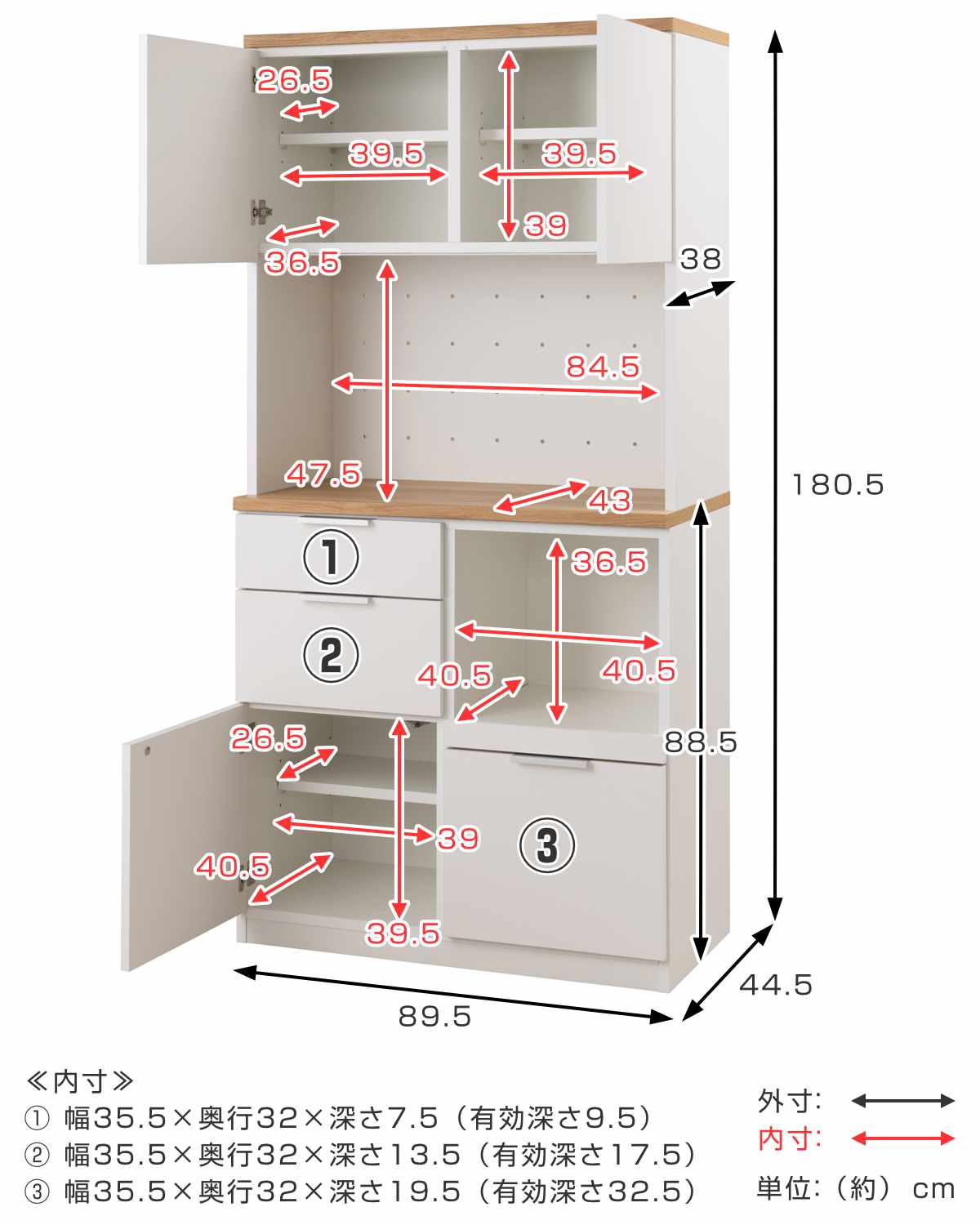 - 約幅89.5×奥行44.5×高さ180.5cm