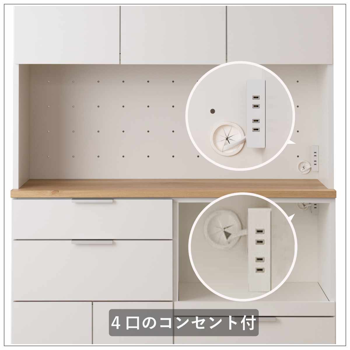 上段、下段に2口、合計4口のコンセント付き。電子レンジや炊飯器、ポットなど複数の家電を同時に使えて便利です。