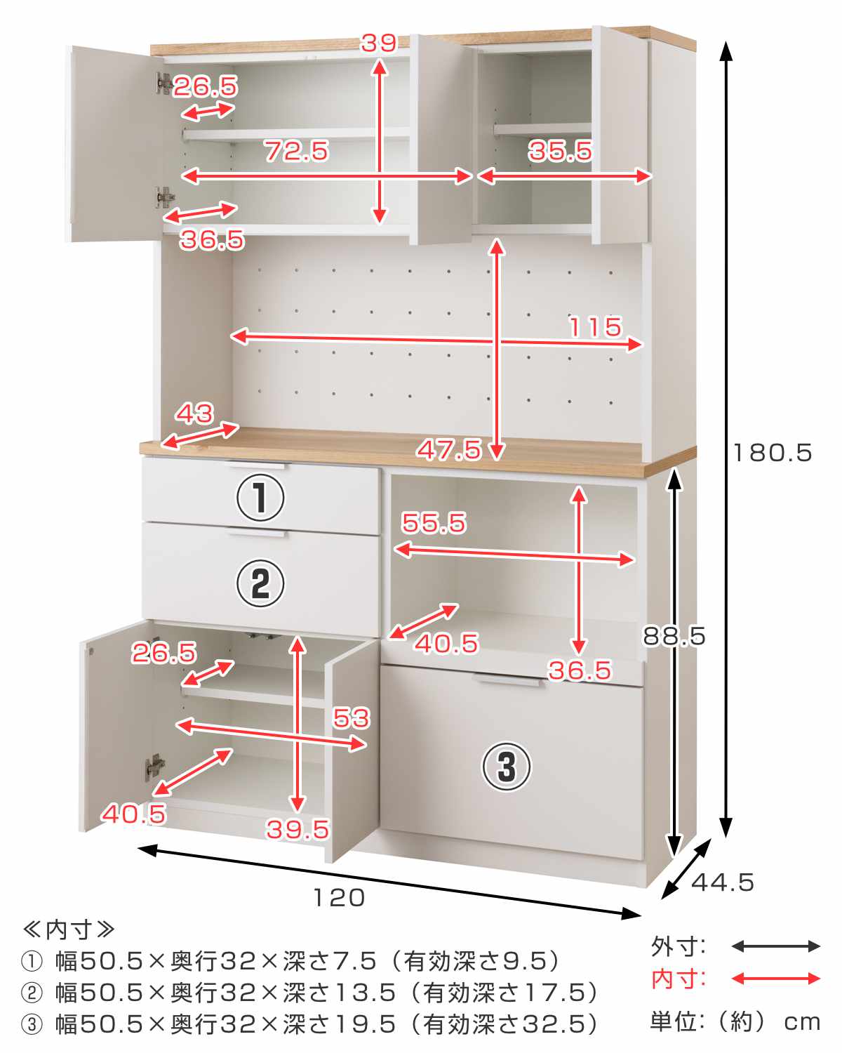 ![]() コンパクトサイズ キッチンボード 幅89.5cm | ![]() たっぷり収納できる キッチンボード 幅120cm 【▲このページの商品】 |