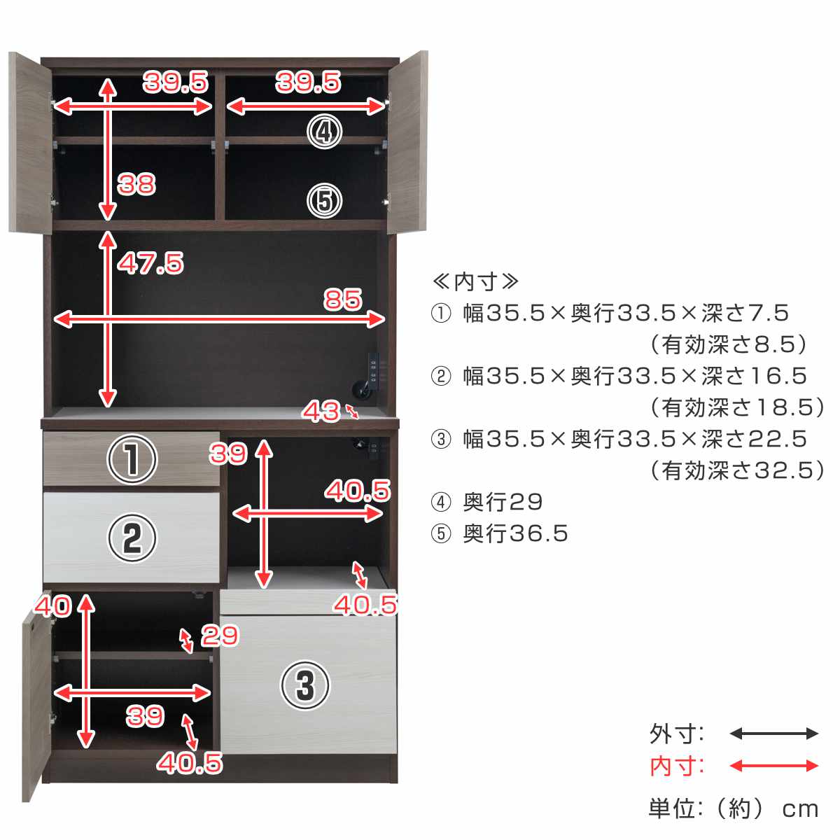 ![]() コンパクトサイズ キッチンボード 幅90cm 【▲このページの商品】 | ![]() たっぷり収納できる キッチンボード 幅120cm |