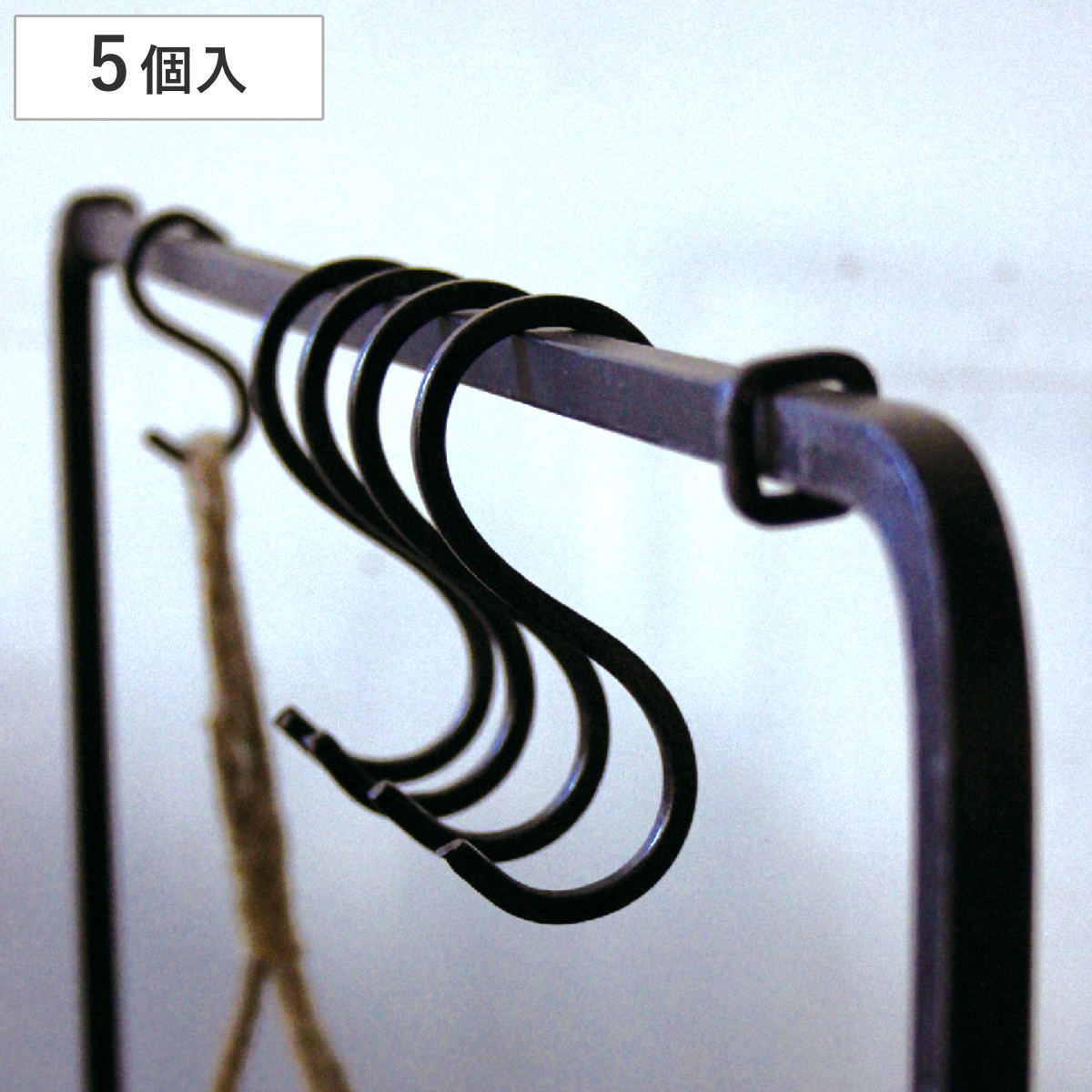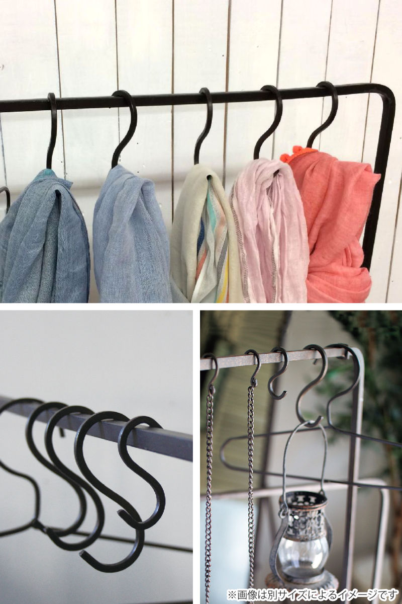 四角い鉄の棒を曲げてつくられたアンティーク調のS字フック。吊るす収納やディスプレイに便利なアイテムです。シンプルな形状だからこそインテリアに馴染みやすくDIY素材としてもお使いいただけます。