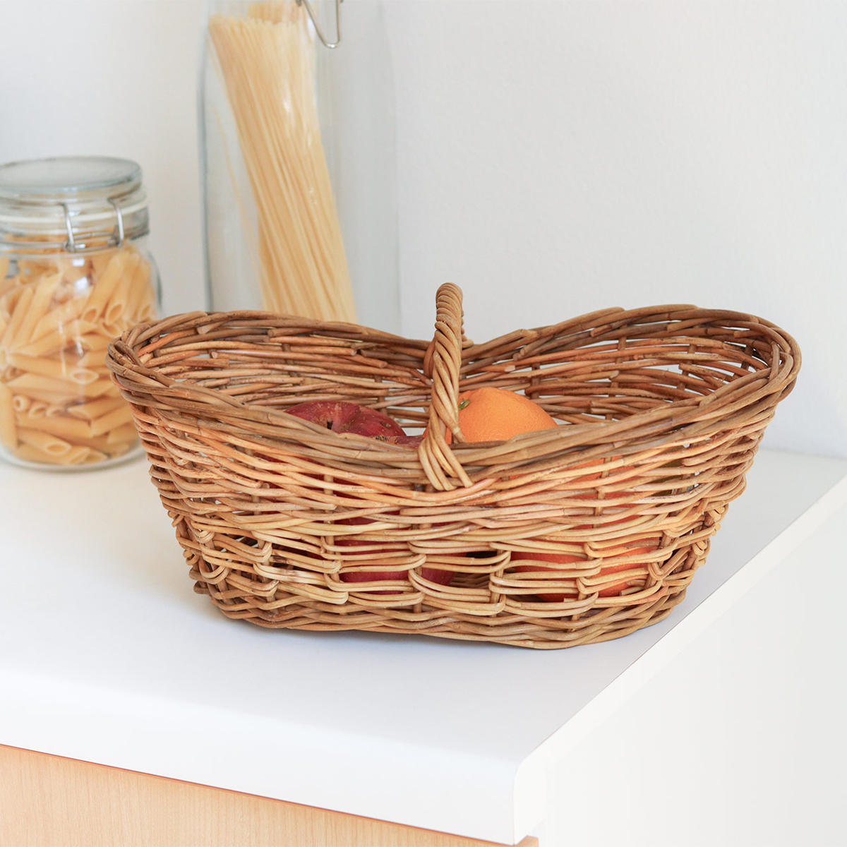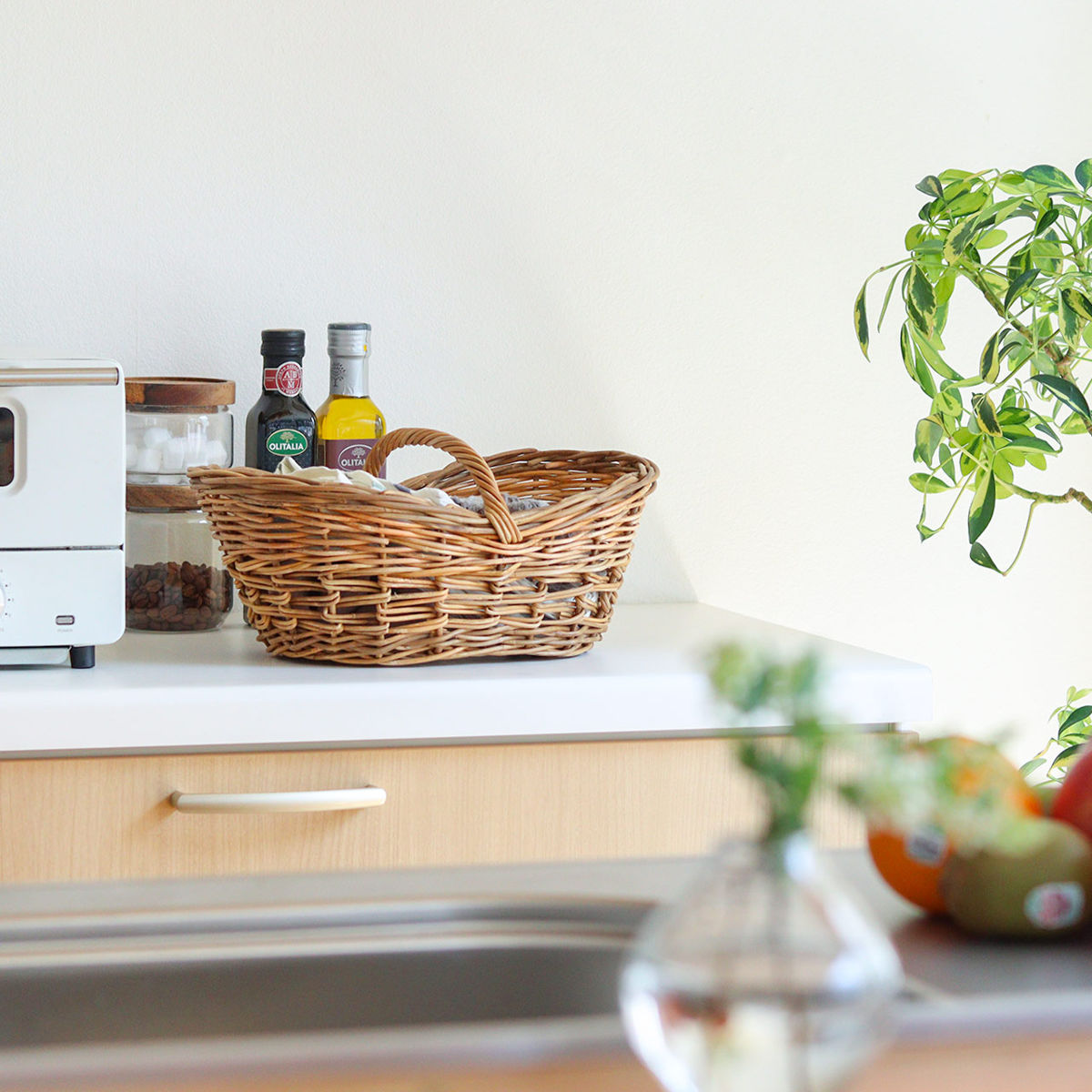 浅めのロータイプなので物の出し入れが簡単で、小物収納にも便利です。果物やキッチン周りの小物など、ざっくり入れるだけでも絵になります。