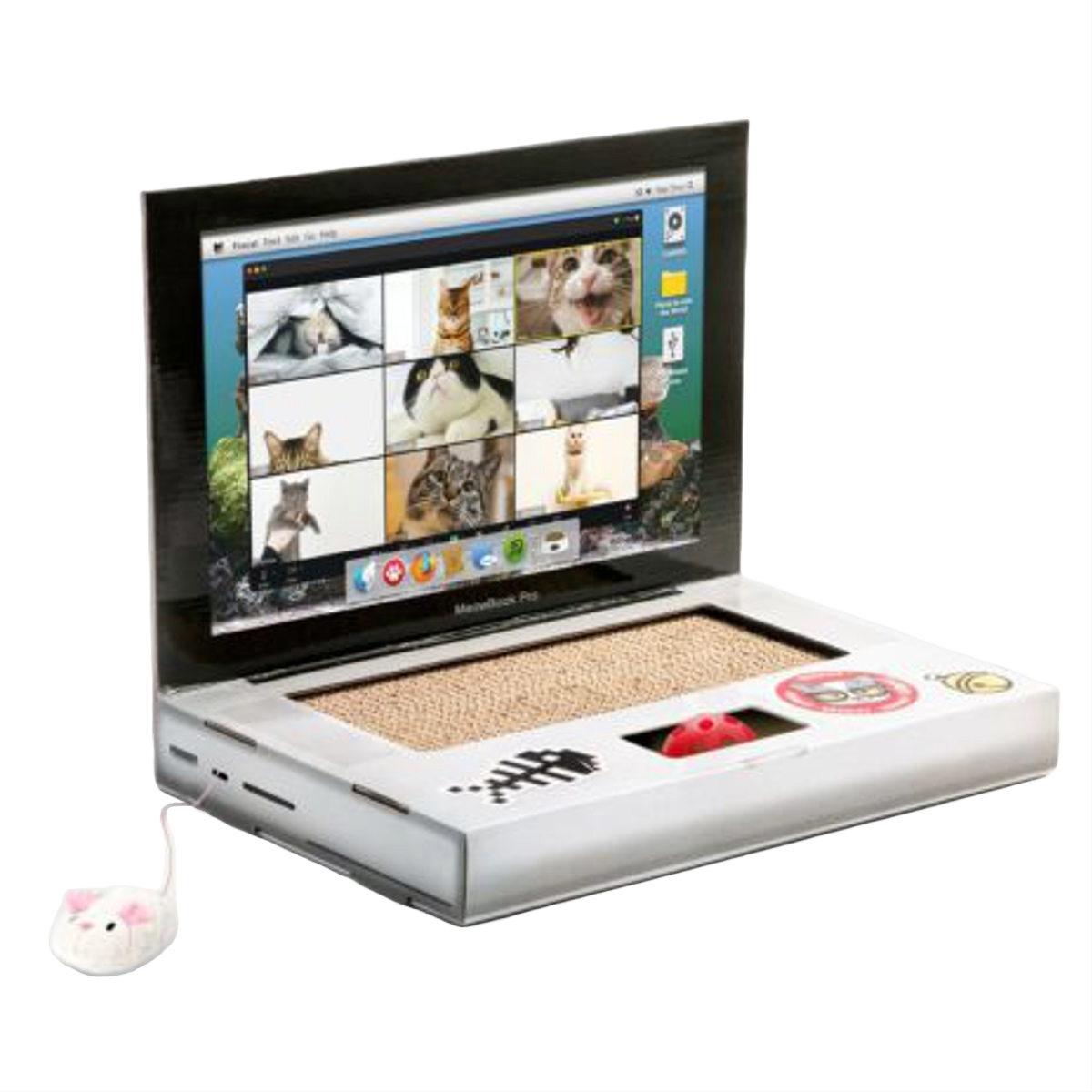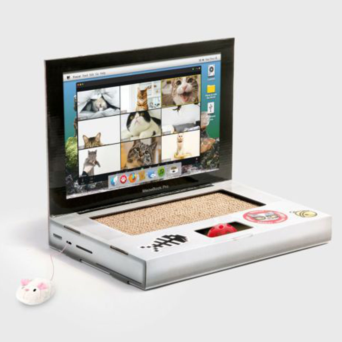 爪をとぐ姿はさながらビジネスマン!?まるで仕事をしているように爪とぎできちゃうユニークなデザインです。リンリン鳴るトラックパットや、 白いねずみのぬいぐるみの「マウス」など、細かいデザインにも注目です。