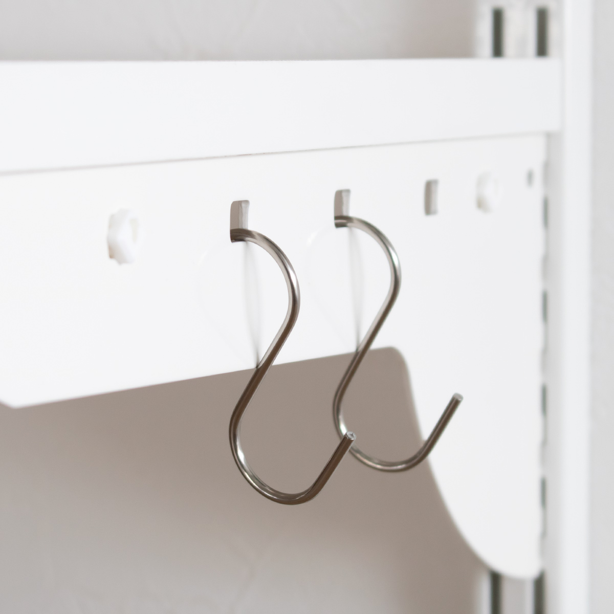 ブラケットには複数の穴が開いており、取り出しやすい位置にパイプを取り付けられます。またブラケットの穴にフックなどを引っ掛けて、ちょっとした小物を収納することも可能です。