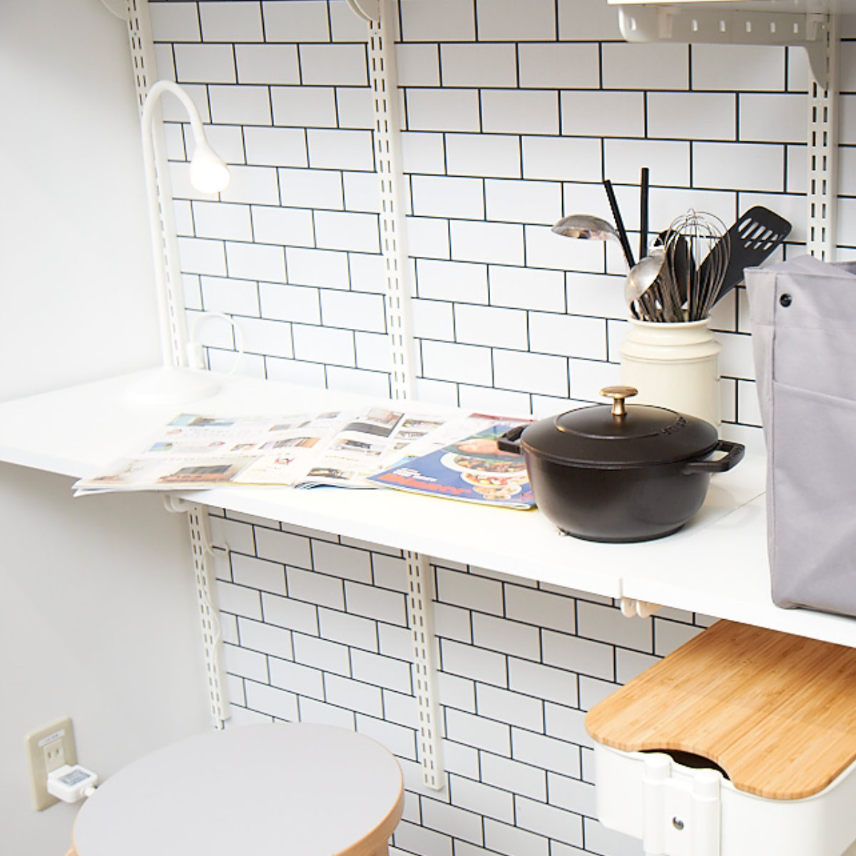 食品ストックや調味料、調理道具、消耗品など何かと収納する物が多いキッチン。キッチンの空いている壁に設置すれば、パントリーとしてもお使いいただけます。収納スペースを増やすことによってキッチンが広々と使えて片付けやすくなり、家事の作業効率アップにも繋がります。