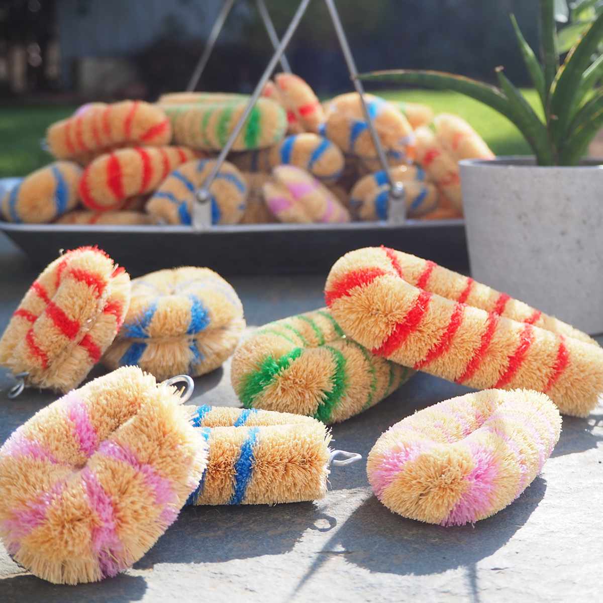 丈夫で長持ちする天然素材の亀の子束子です。適度な硬さを持つパーム繊維で汚れをかき出し、こすり取ります。キッチンなど毎日の掃除に便利にお使いいただけます。