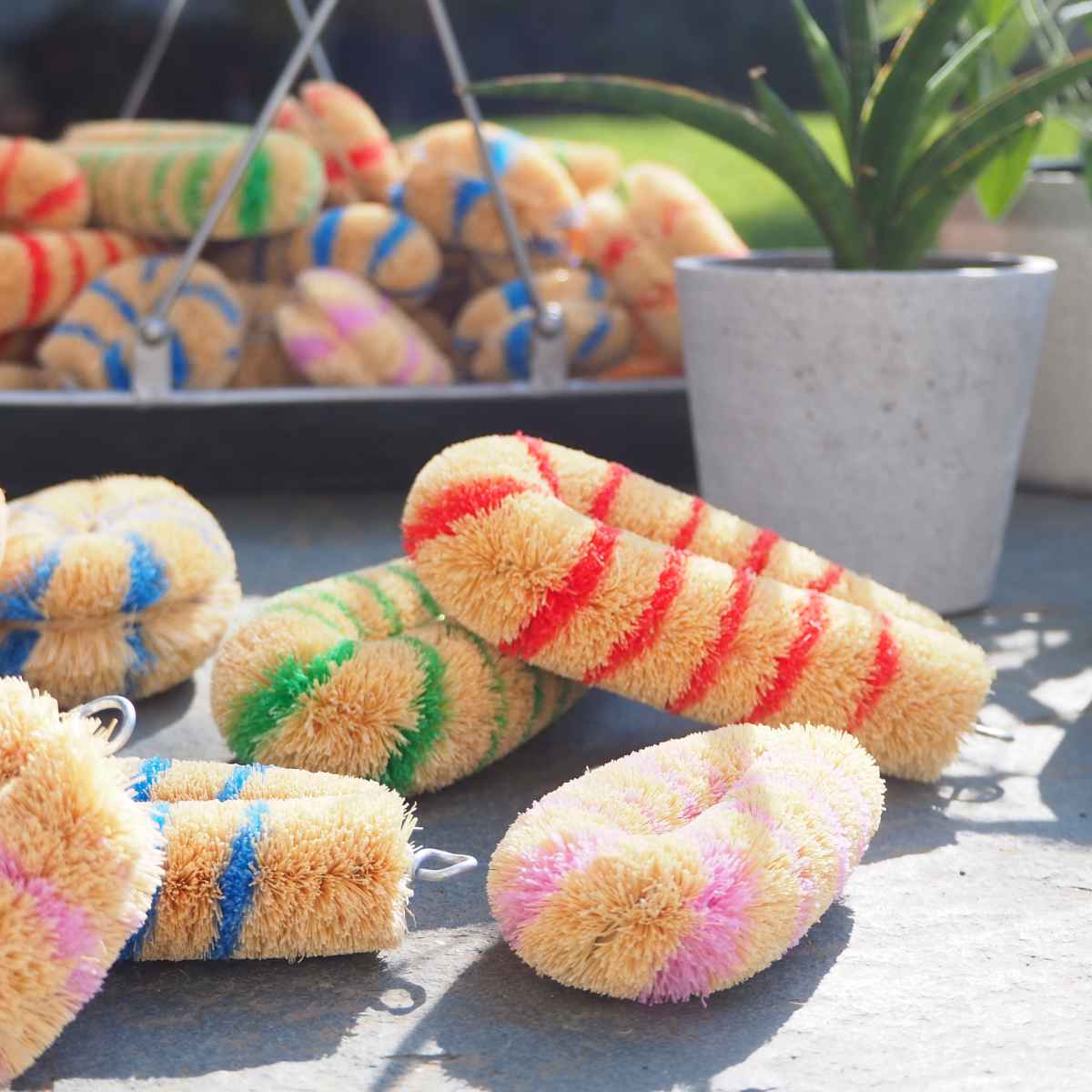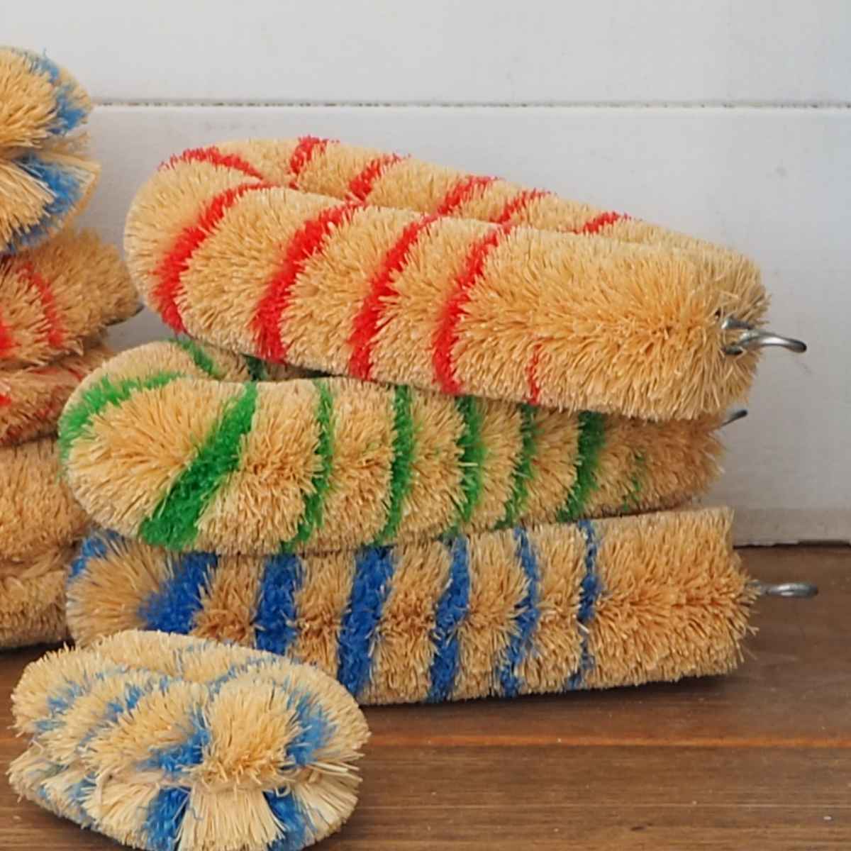 丈夫で長持ちする天然素材の亀の子束子です。適度な硬さを持つパーム繊維で汚れをかき出し、こすり取ります。