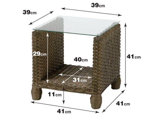 ラタンテーブル ガラス天板 ナイトテーブル 籐家具 幅41cm ( センターテーブル アジアン )