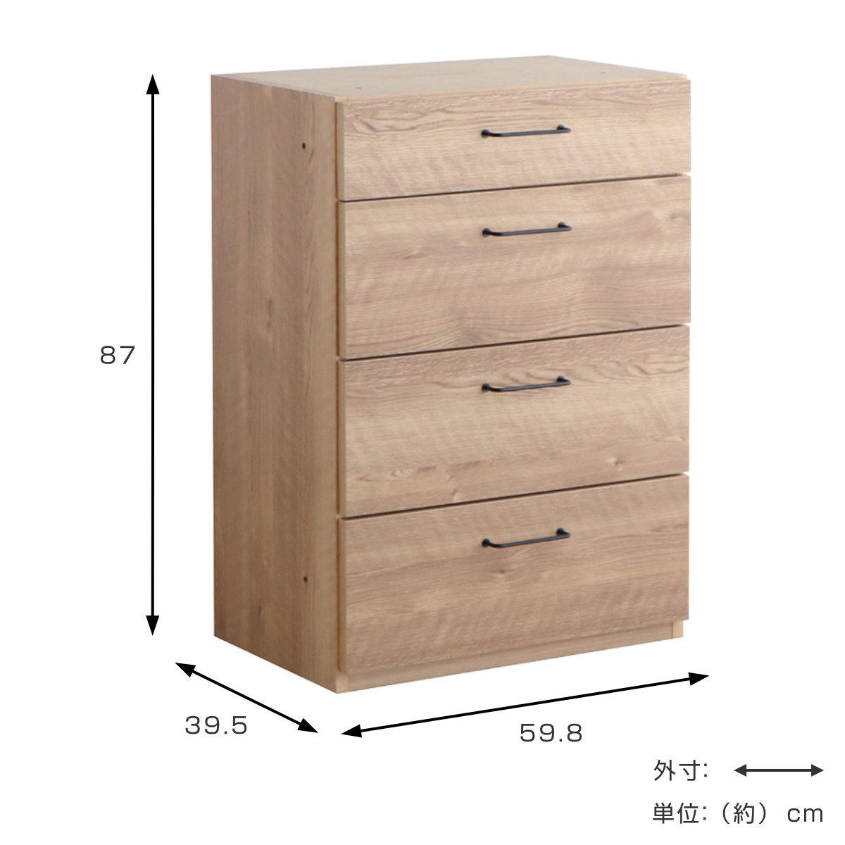 - 約幅59.8×奥行39.5×高さ87cm