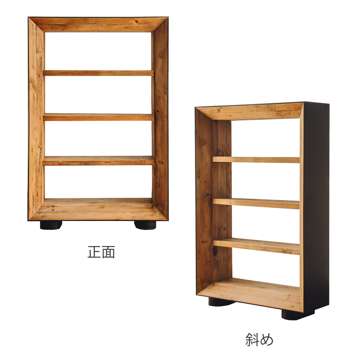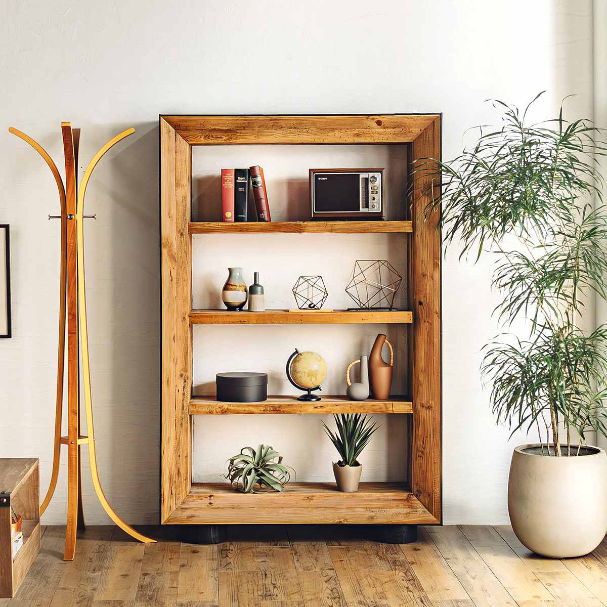 経年で深まる風合いが魅力のパイン古材を贅沢に使ったシェルフです。木目や節のひとつひとつが個性となり、温かみと洗練されたヴィンテージ感を演出します。オープンタイプなので見せる収納を楽しめ、インテリアのアクセントとしても存在感を放ちます。