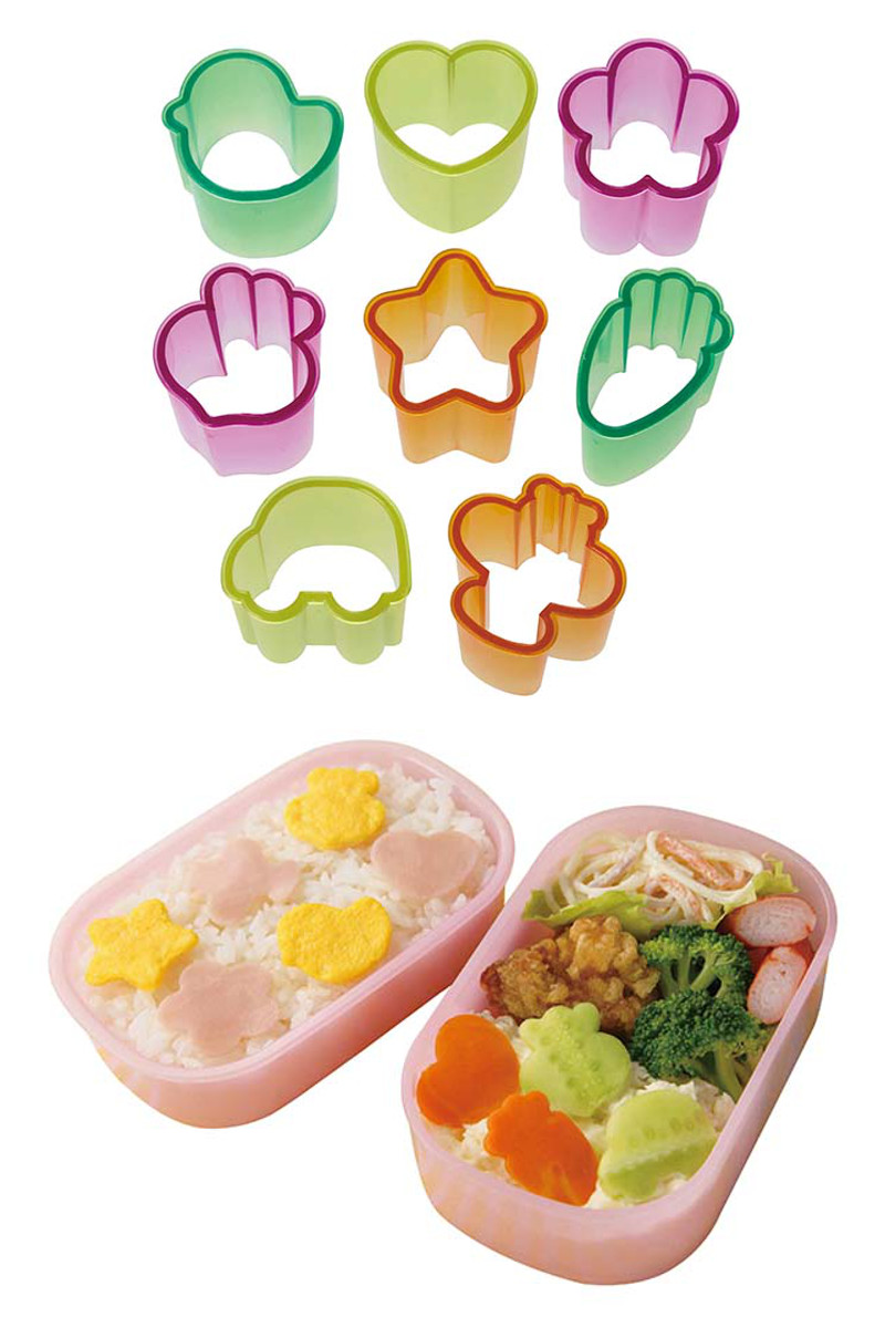 野菜やハム、チーズなどをかわいく型抜きできる抜き型セットです。8種類の抜き型を自由に組み合わせて、手軽に可愛いお弁当が完成。キャラ弁デビューにもぴったりです。