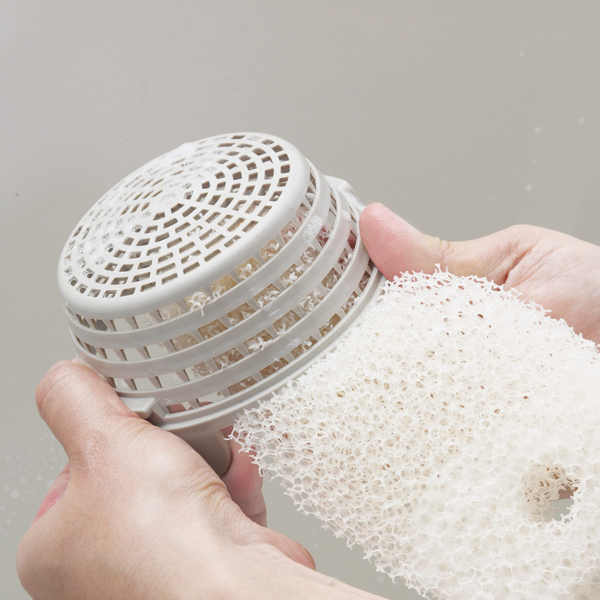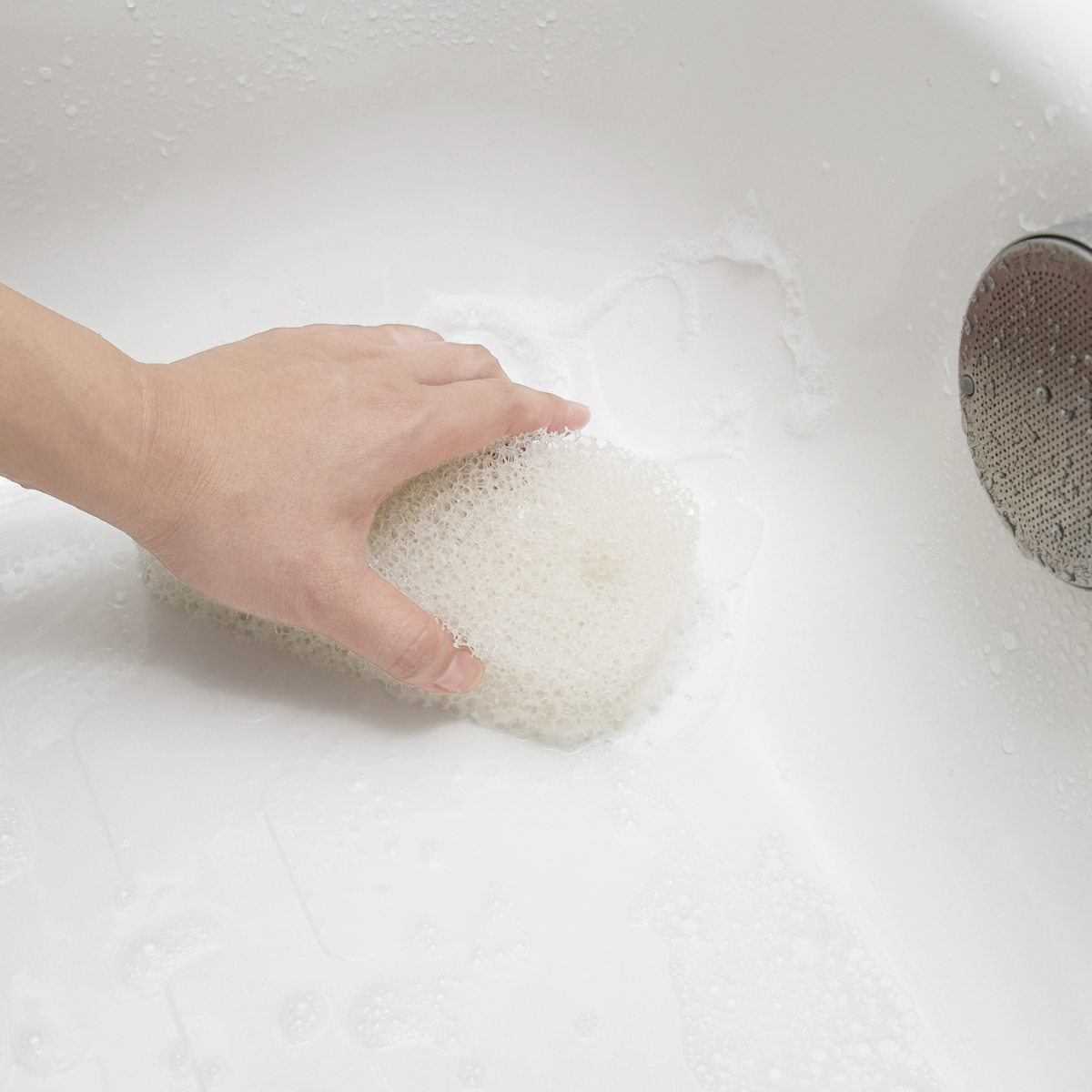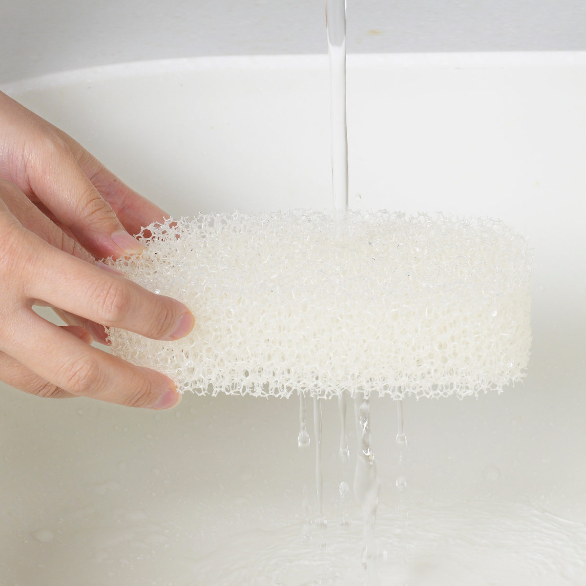 スポンジの目が粗く、細かい隙間や凸凹面に入り込んで汚れを落とします。粗めの脱膜で水切れが良く、スポンジのカビも予防します。