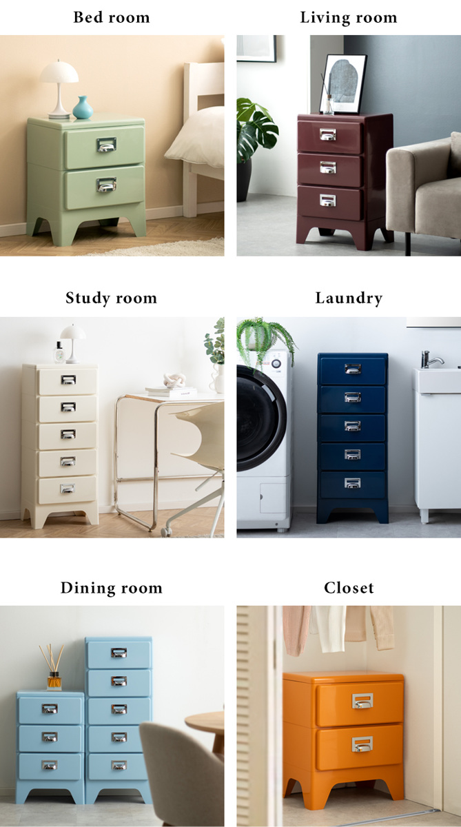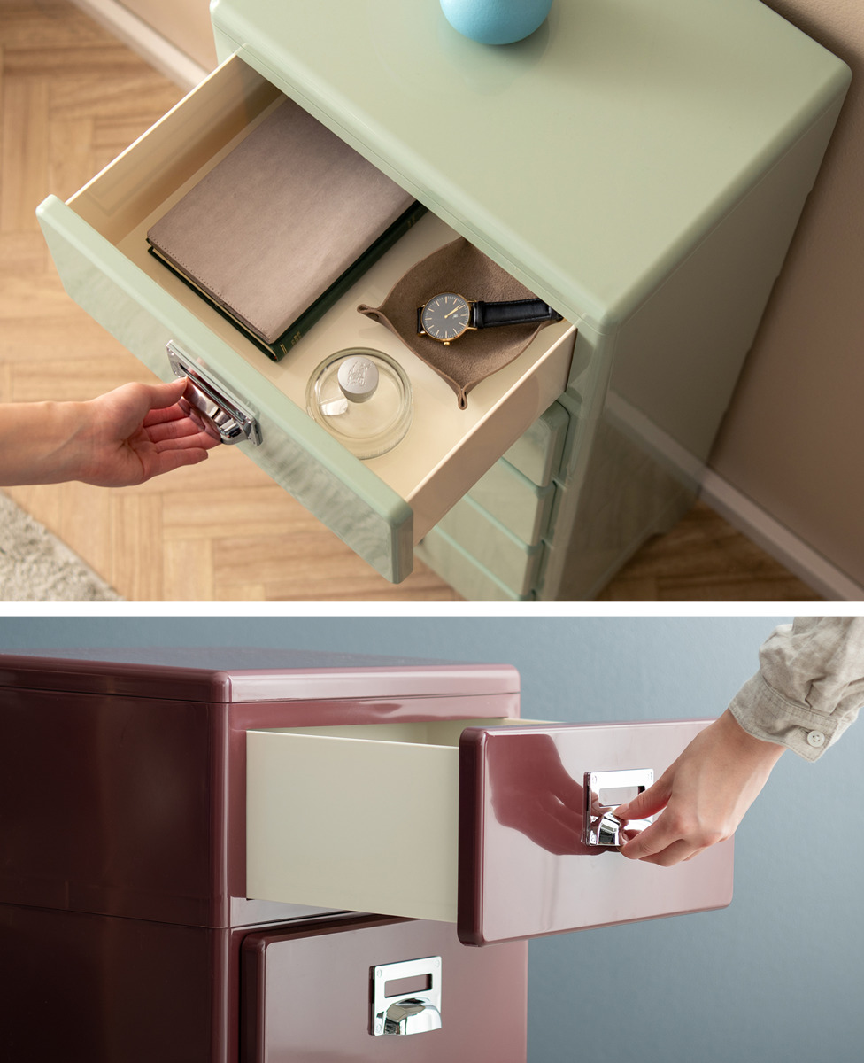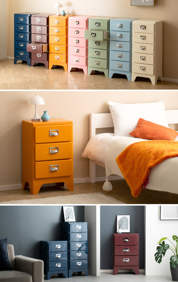 全7色の豊富なカラーバリエーションから選べるデザインチェストは、置くだけでお部屋のアクセントに。どこか懐かしいレトロな雰囲気が、空間をより一層おしゃれに演出してくれます。お部屋の雰囲気やインテリアに調和する、お気に入りのカラーを見つけてください。
