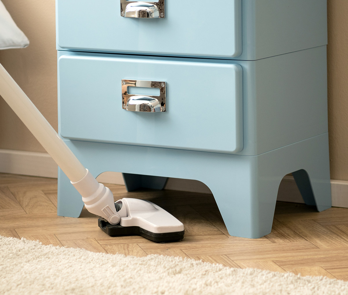 可愛い曲線を描いたチェストの脚部は高さが9cmあり、掃除機のヘッドが通るのでお掃除がしやすく清潔に保てます。