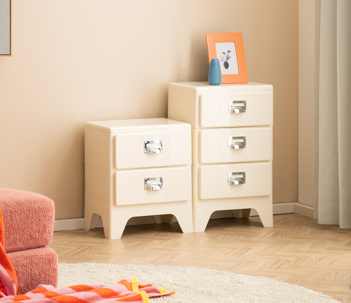 ツヤ感と丸みのあるデザインがレトロ可愛い多段チェスト