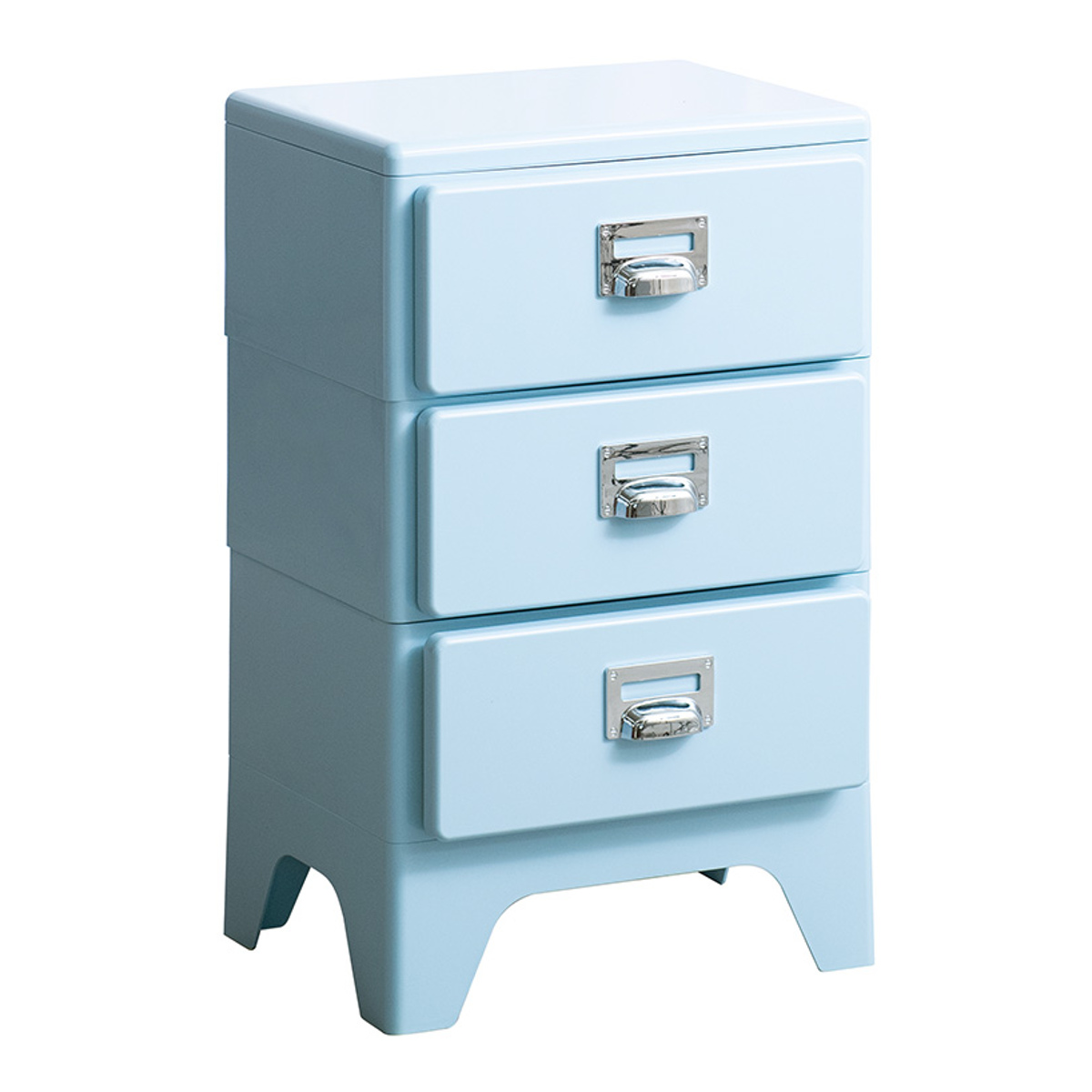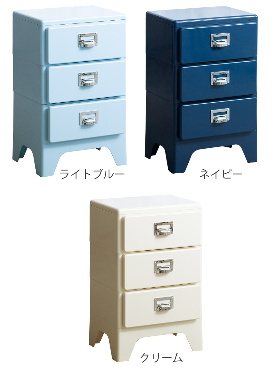 背の低い3段チェストは、デスク下収納やベッド横のサイドチェストとしても使えるので、限られたスペースの有効活用に最適です。