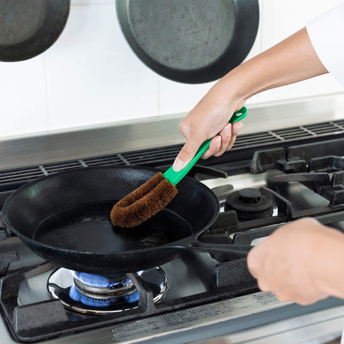 鉄のフライパンやザル、五徳などの頑固な汚れ落としに最適です。キッチン用品のお手入れだけでなく、排水溝やお風呂のタイル磨きにも便利に使えます。カーブのついた柄は手にフィットしやすく、力を入れやすい設計なのでゴシゴシ洗えます。
