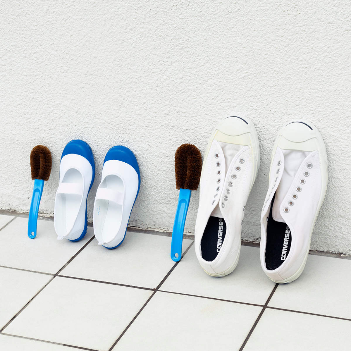 キッチンやお風呂の掃除はもちろん、靴洗い用のブラシとしても活躍します。柄付きタイプなので、手が届きにくい靴の中やつま先部分まで、隅々までしっかり洗えます。スモールサイズはお子様の上履きや運動靴にぴったり、ノーマルサイズは大人の靴洗いに最適です。