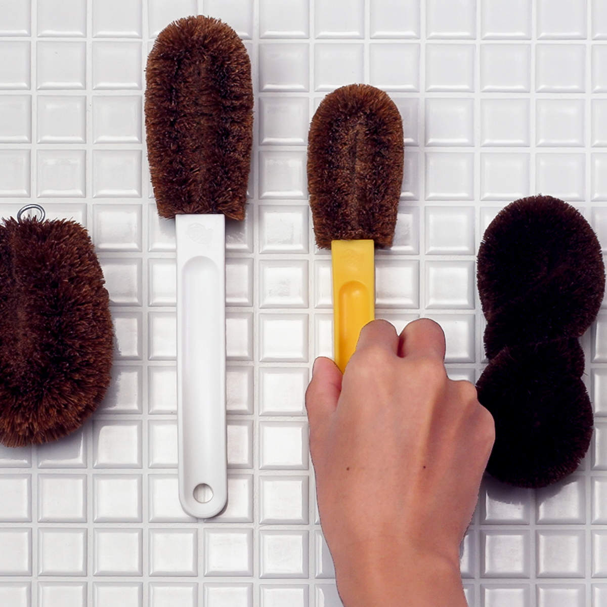●キッチンやお風呂周り、靴洗いなどに使える柄付きたわしです。