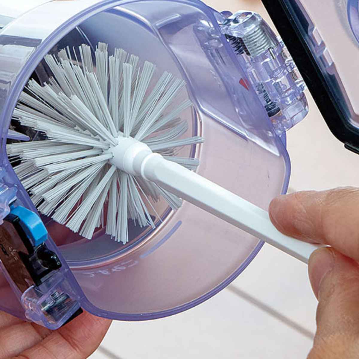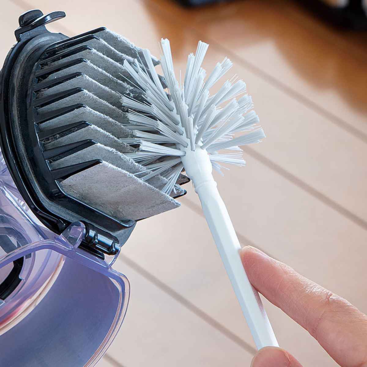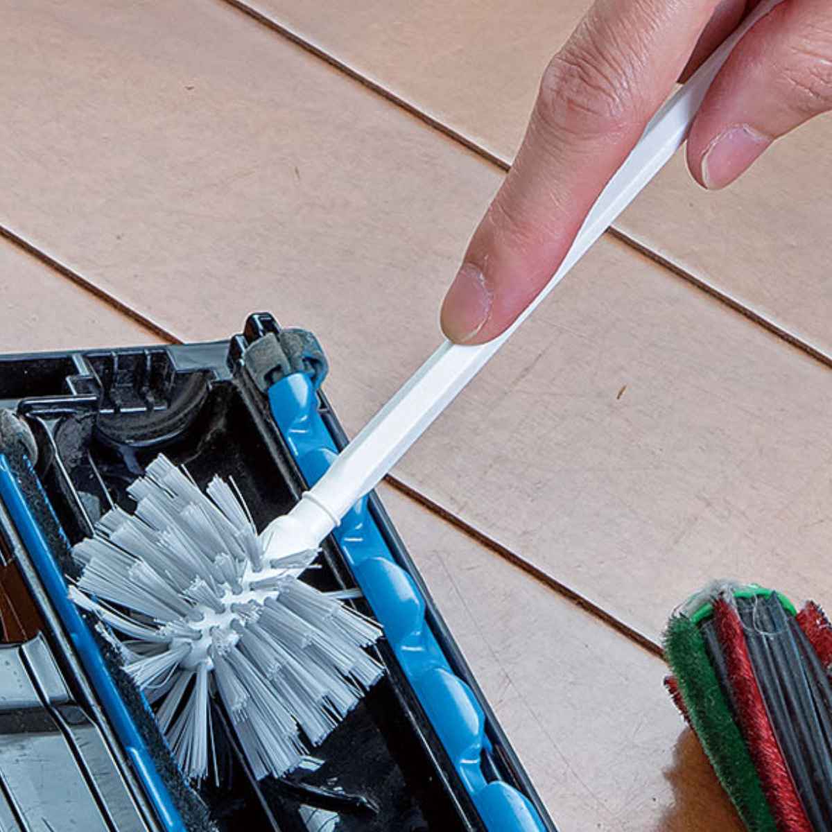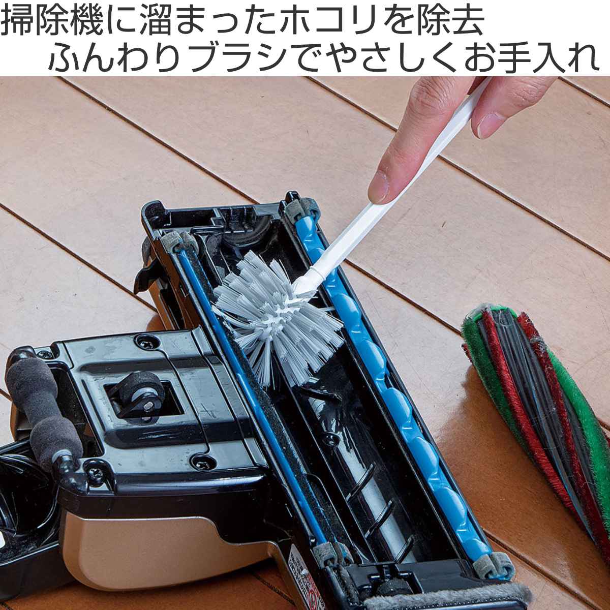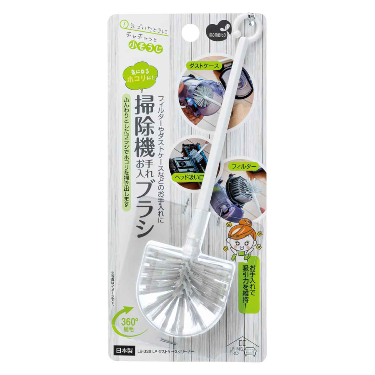 毛足の長い360度植毛ブラシで掃除機にたまったホコリをしっかり掃き出し、掃除機を清潔に保ちます。