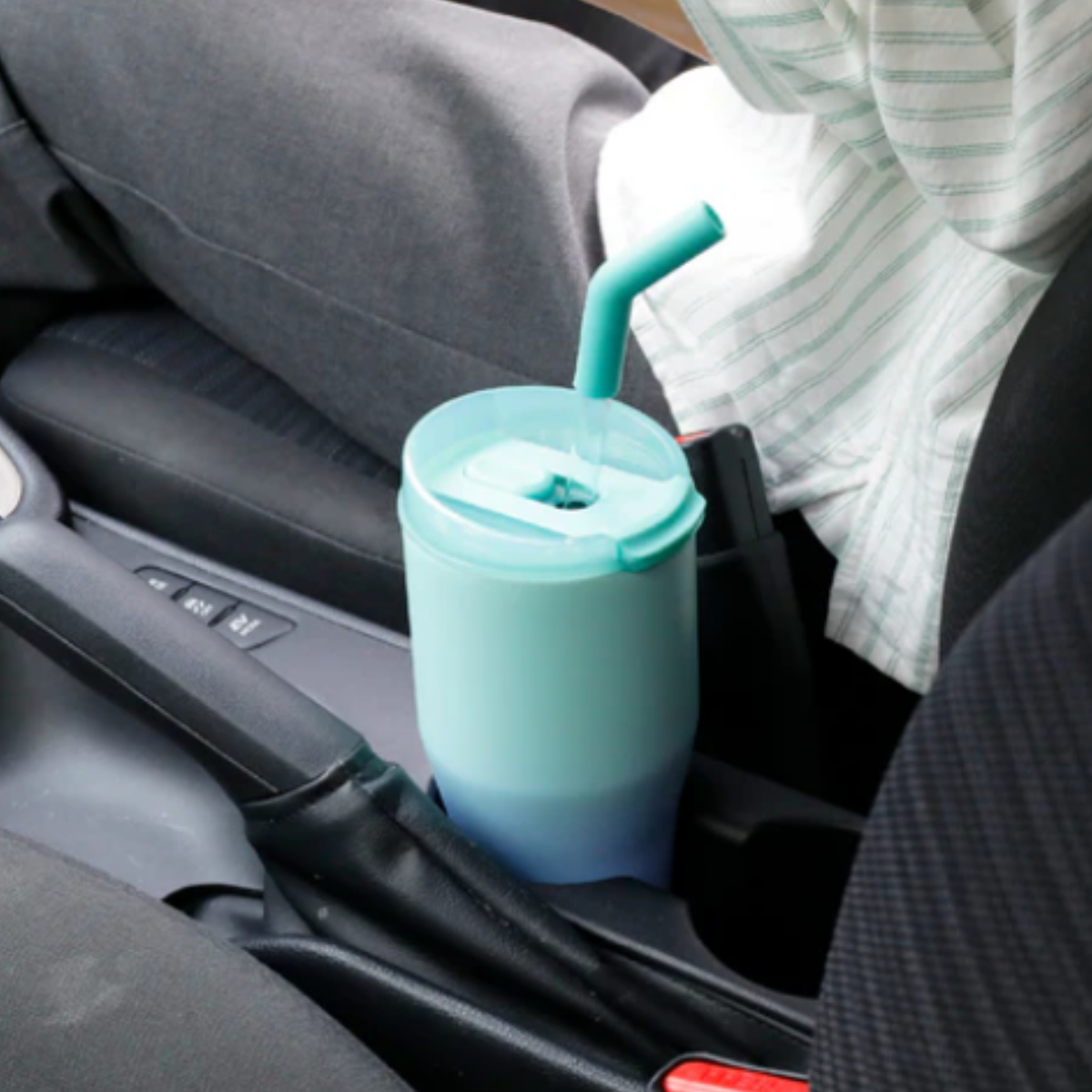 車のカップホルダーに入るサイズでドライブ中もスマートに水分補給ができます。運転しながらもストローで飲めるので便利です。