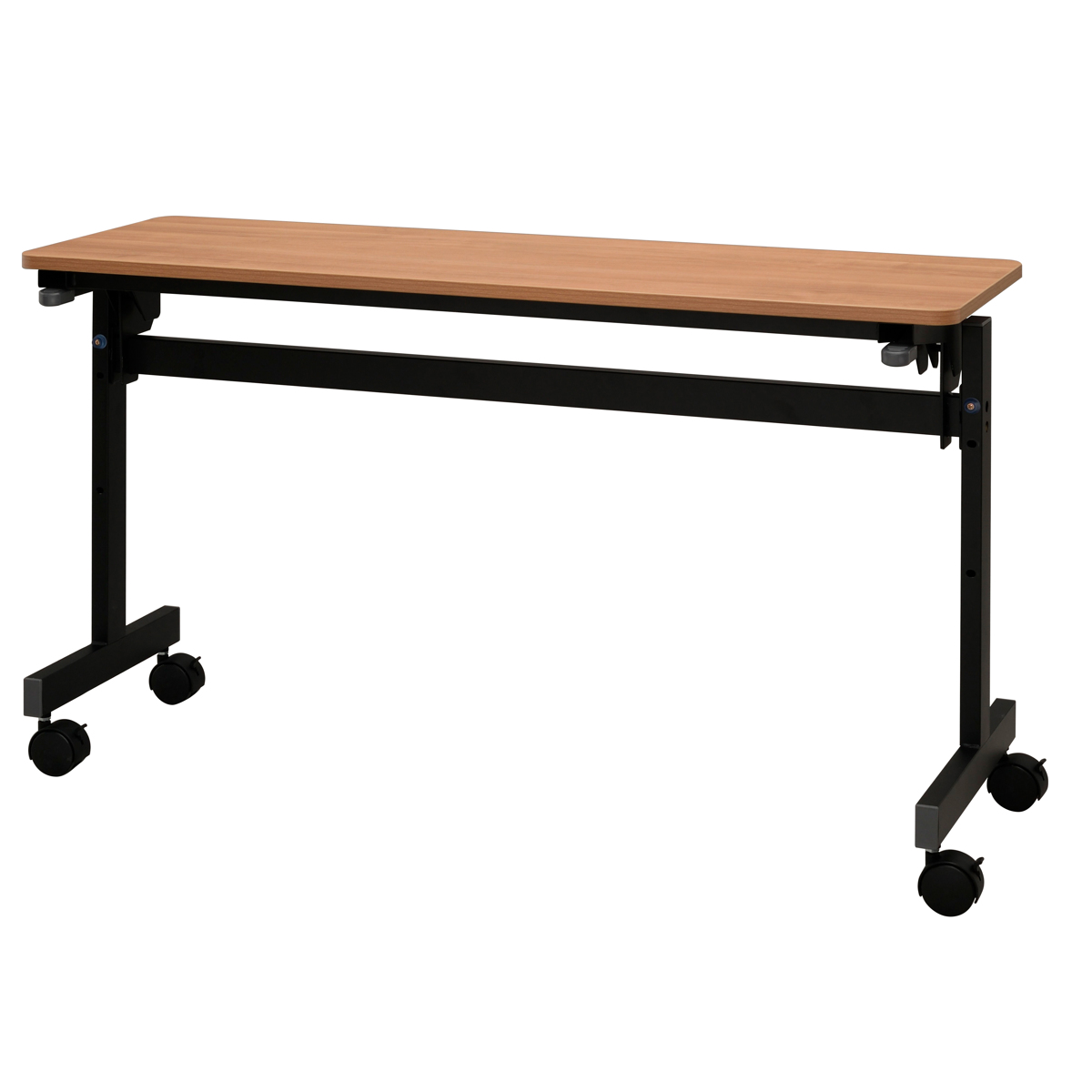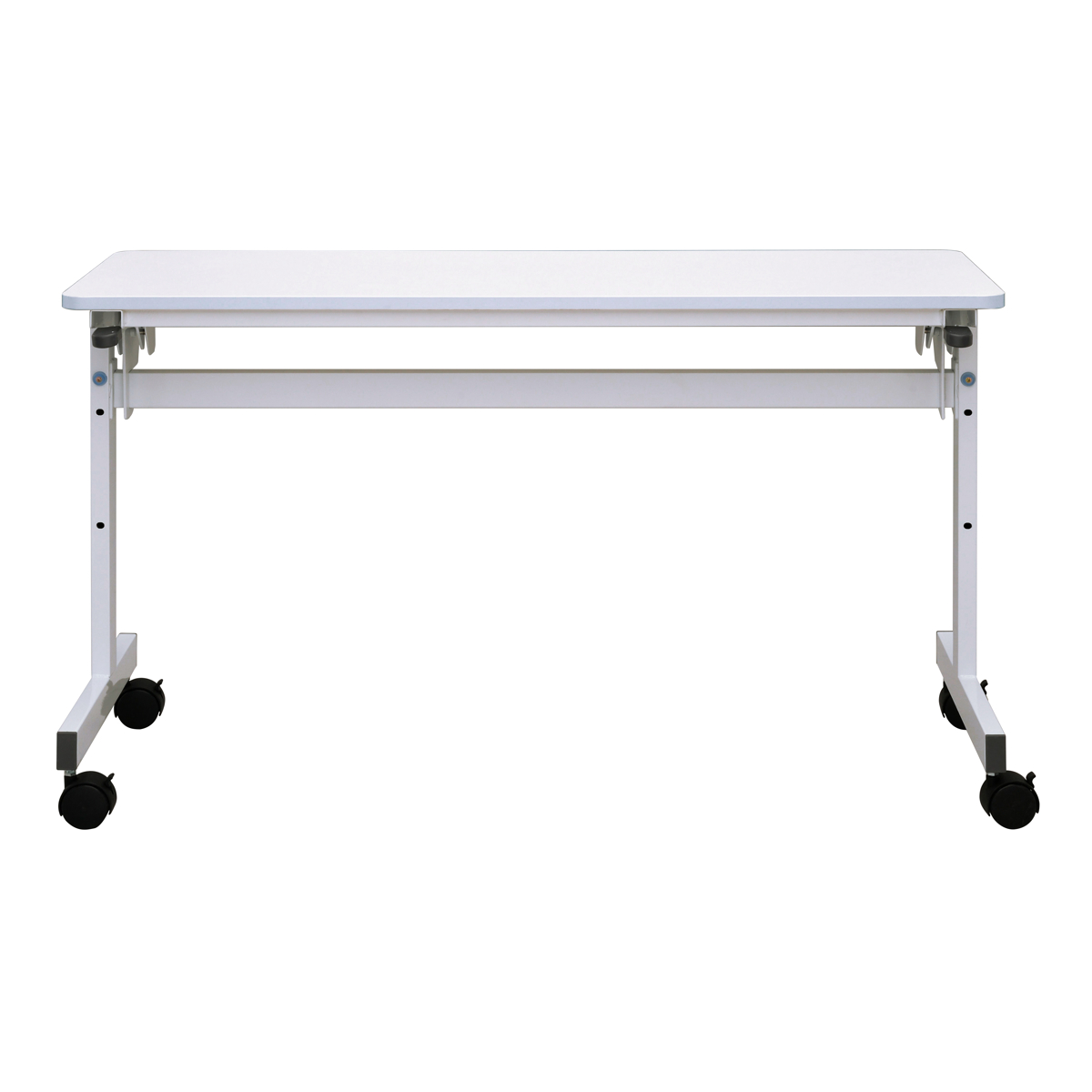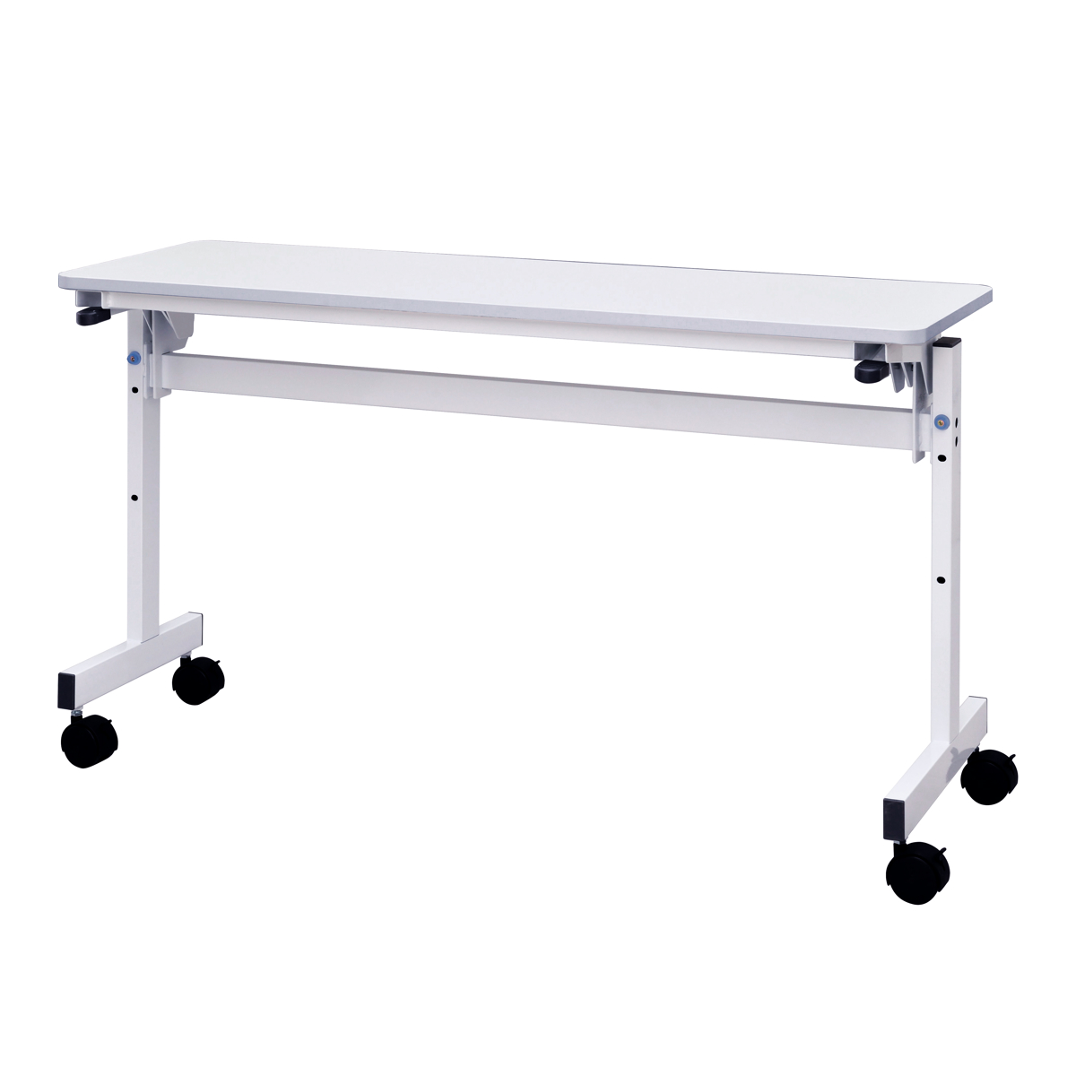 オフィスや会議室、教室に欠かせないフォールディングテーブルです。天板を折りたたんで平行スタッキングが可能です。棚やフックを省いたシンプル構造でテーブル下空間がゆったりしています。