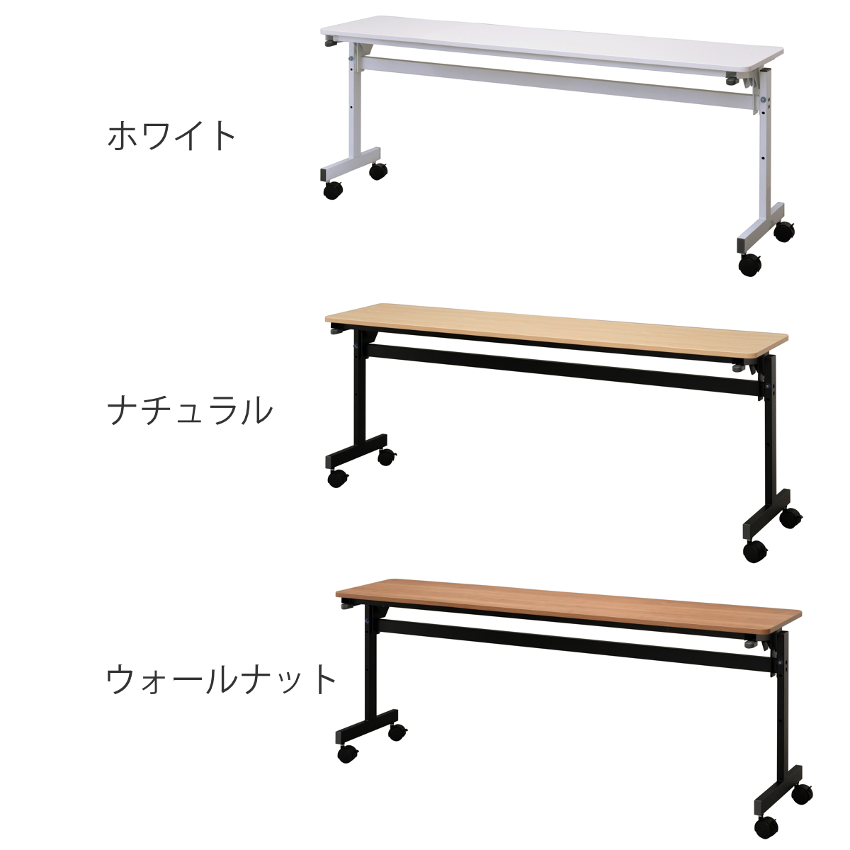 オフィスや会議室、教室に欠かせないフォールディングテーブルです。平行スタッキングでコンパクトに収納できます。棚やフックを省いたシンプル構造でテーブル下空間がゆったりしています。