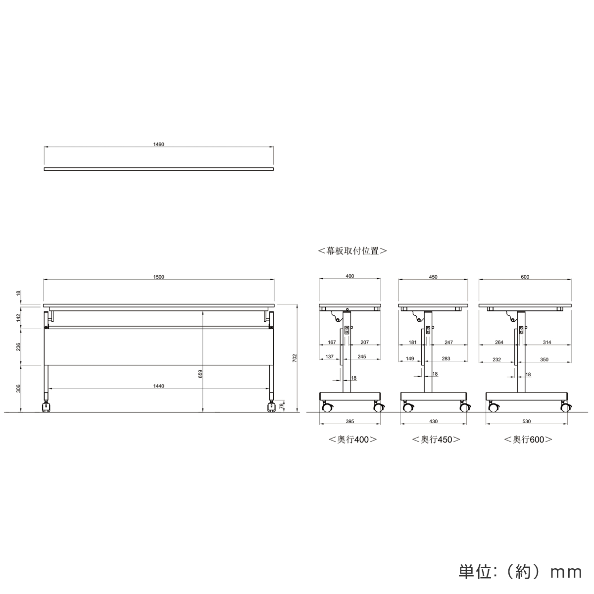 ●「フォールディングテーブル3シリーズ」の幅150cm専用の幕板です。