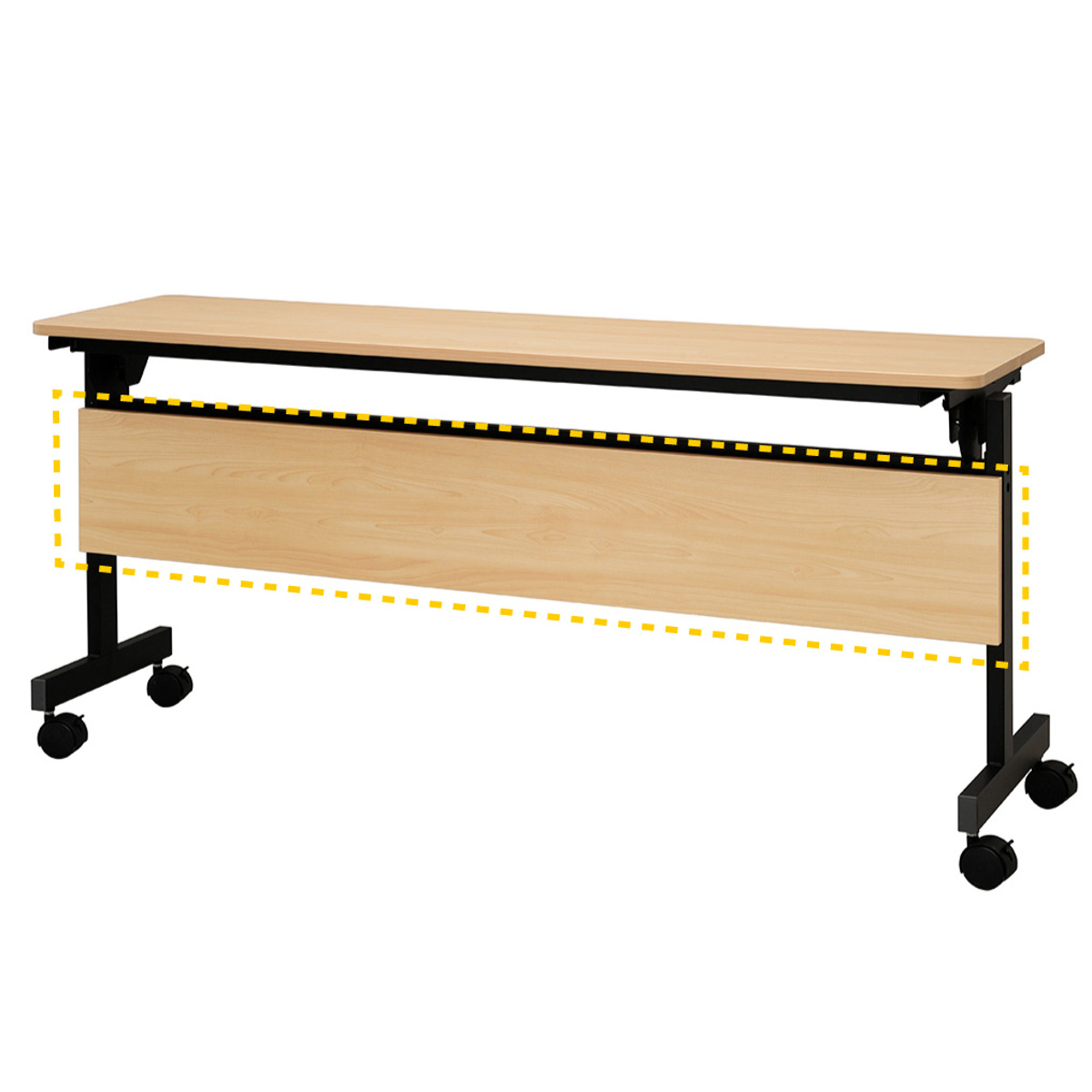 別売りの「シンプルフォールディングテーブル3」幅150cm本体に取り付ける事ができる幕板です。足元をすっきりと隠し、よりスマートな印象に仕上げます。会議室やセミナールーム、研修施設など、フォーマルな空間づくりに最適です。