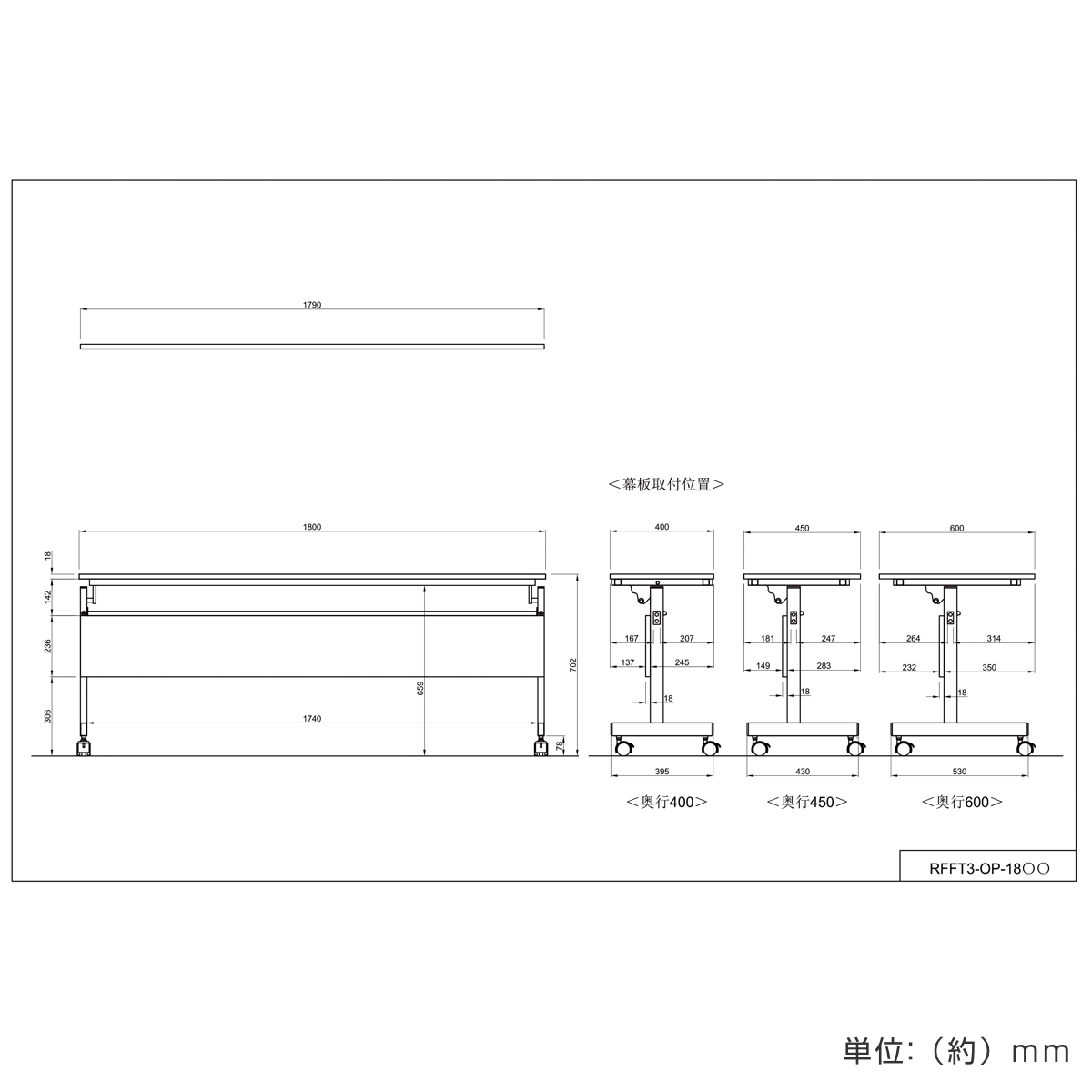 ●「フォールディングテーブル3シリーズ」の幅180cm専用の幕板です。