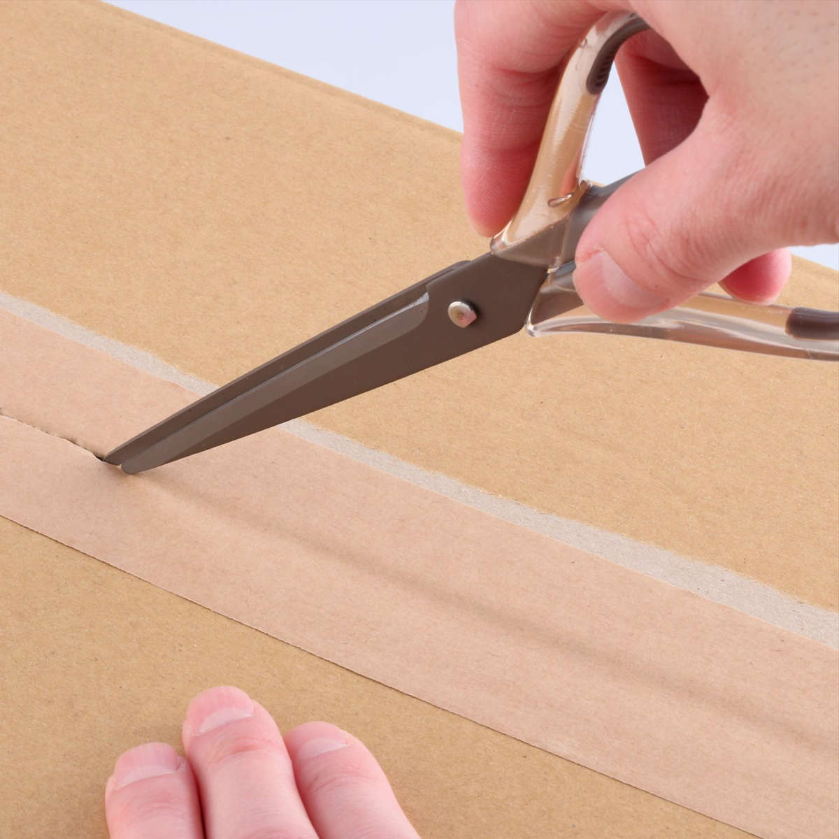 スライド式で片刃を出せば、ダンボールオープナーとしても活躍します。はさみとしてだけでなく、開梱作業にも便利です。