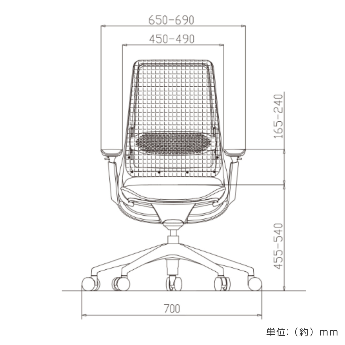 | 材質 | 背:ポリエステルメッシュ 座:モールドウレタン 張地:布 フレーム:ナイロン 脚部:ガス圧式シリンダー、ナイロン キャスター:ウレタン |
