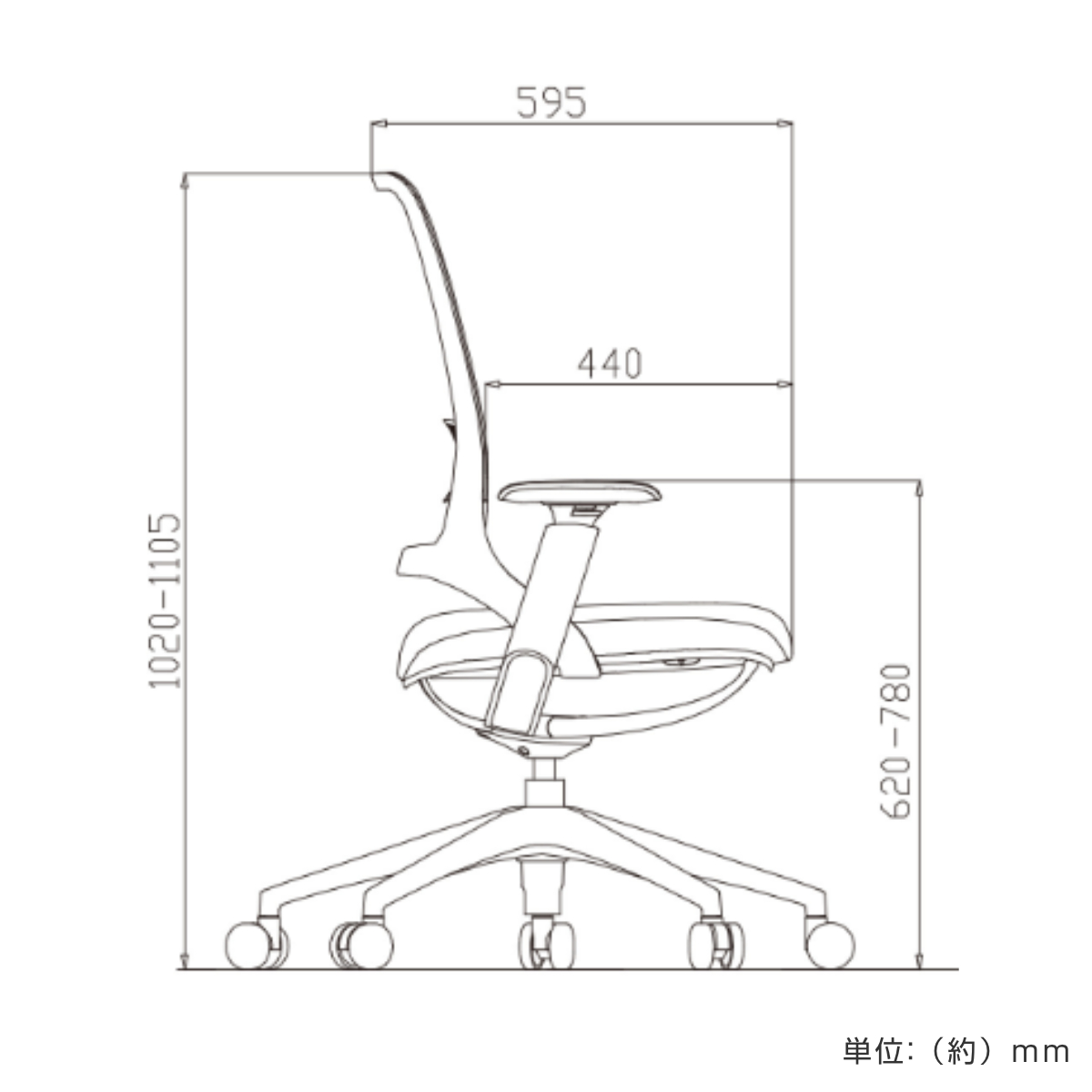 | サイズ | 約 幅65×奥行59.5×高さ102~110.5 座面高:約 45.5~54(cm) |