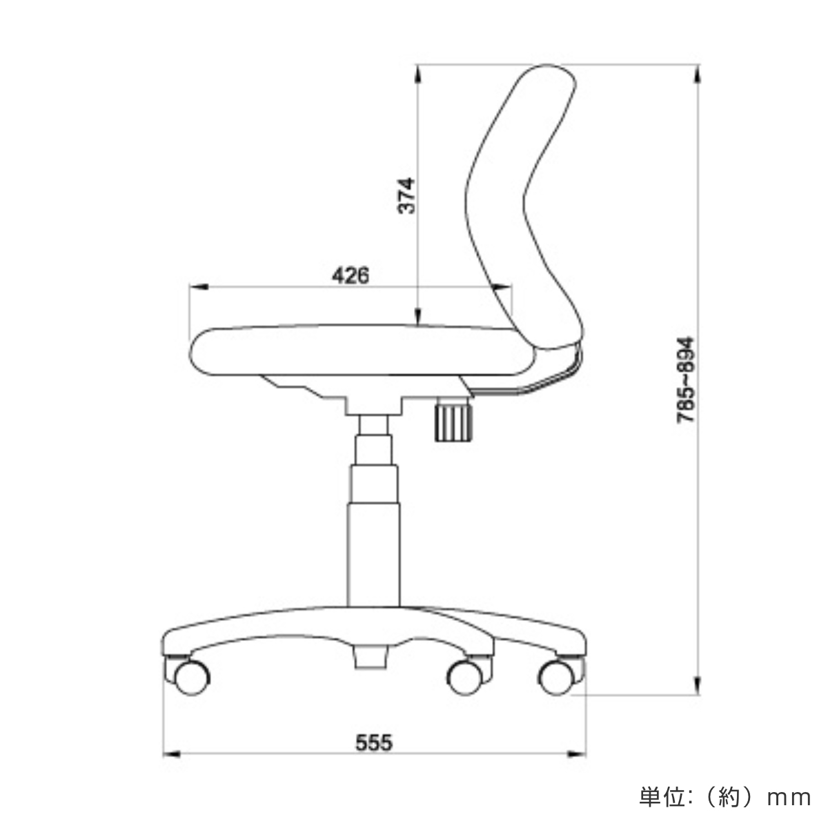 座面高を42.6~53.5cmの範囲で無段階に調節することができます。ガス圧式なのでレバーを押すだけで簡単に設定でき、身体に合った高さでご使用いただけます。