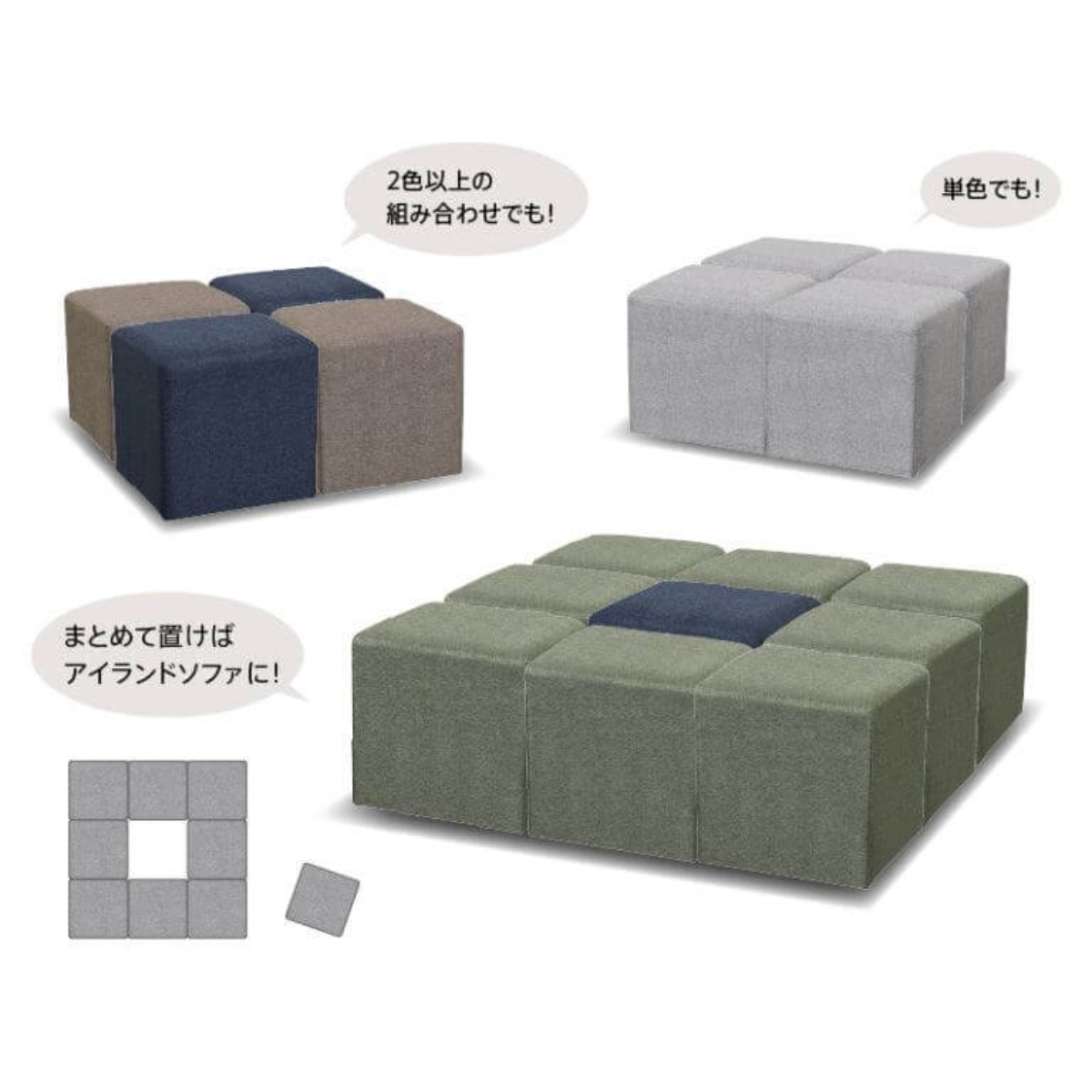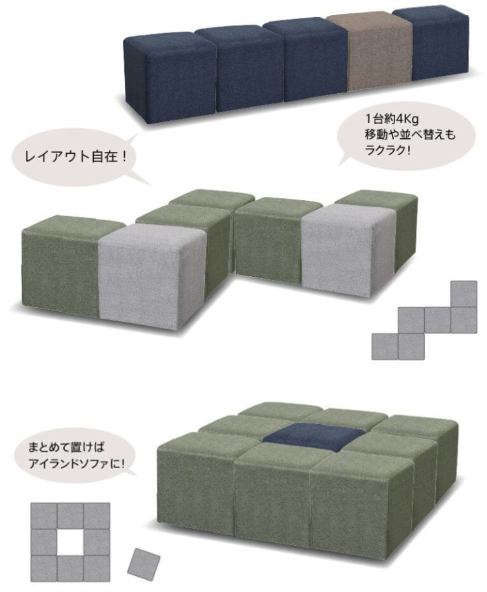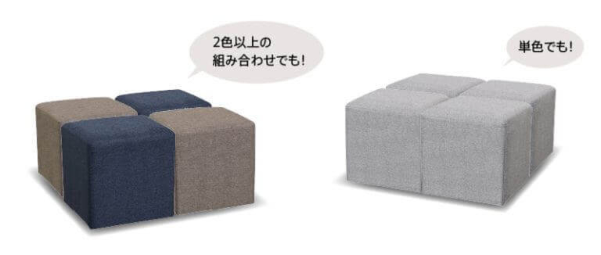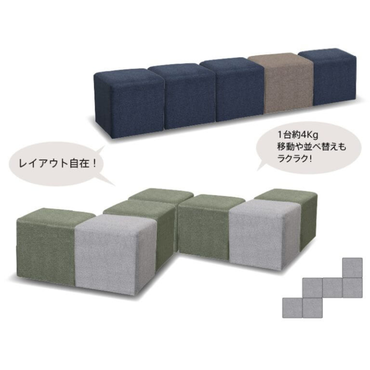 コンパクトなキューブ型のソファです。単独はもちろん、いくつか並べてベンチのようにもできるので、大勢が利用するエントランスの待合スペースからミーティングシーンまで多目的にご利用いただけます。