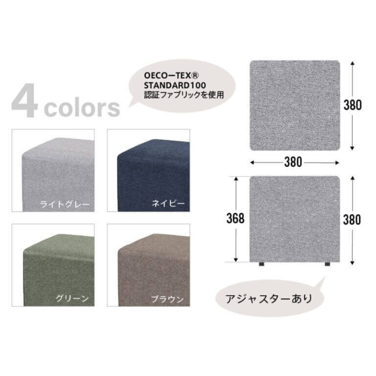 張地には、世界最高水準の安全な繊維製品の証である「エコテックススタンダード100」認証のファブリックを使用しています。座り心地は固めで、沈み込みが少なく立ち上がりやすい仕様です。