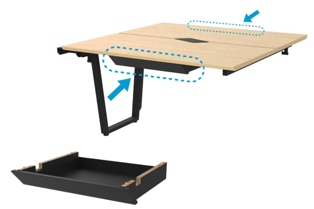 必要に応じて、天板下に別売りの引出しを取り付けてご使用いただけます。書類や小物を整理しやすくなり、作業効率も高まります。