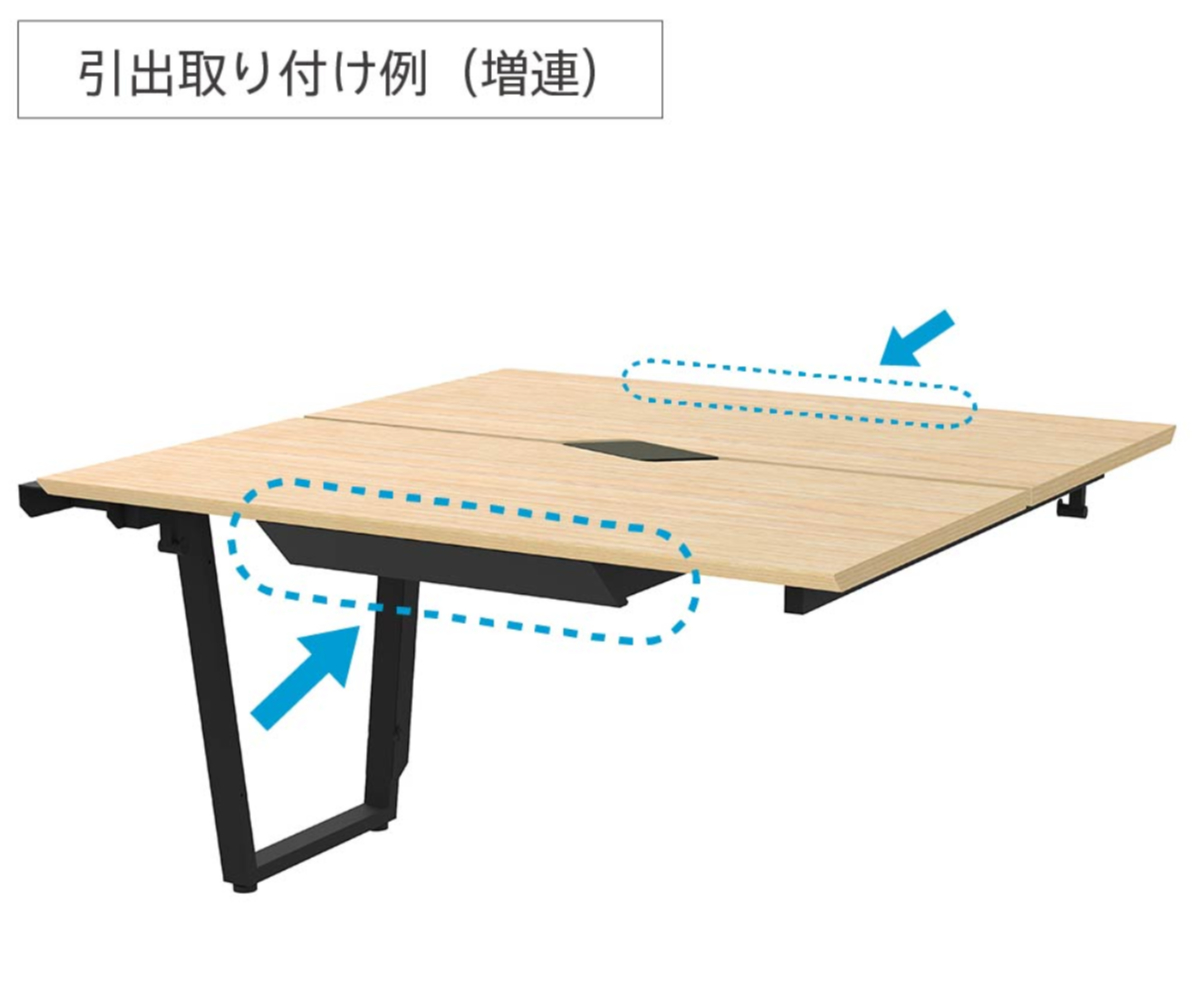●別売りのテーブル本体(基本、増連)に取り付けできる、専用引出しです。