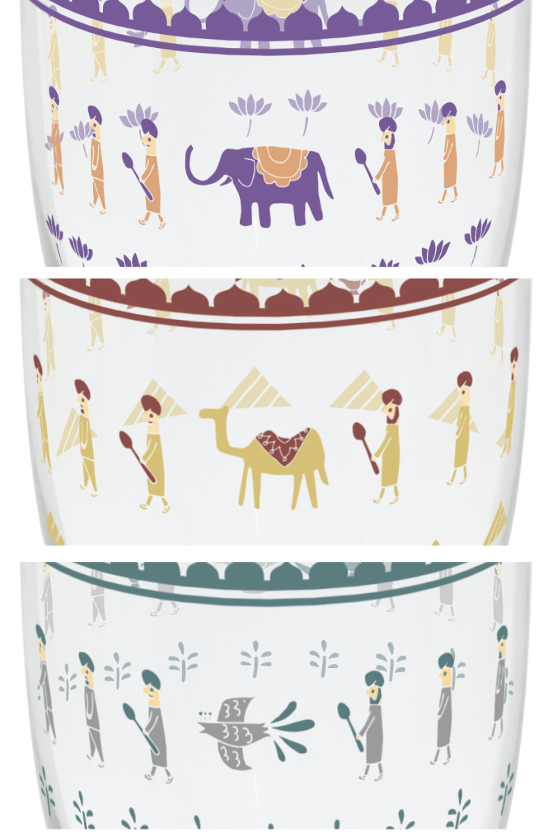 ゾウ、ラクダ、クジャク、それぞれ異なる魅力をもった動物たちのモチーフがデザインされた、遊び心たっぷりのグラス。 個性的でかわいらしいデザインが、日常のドリンクタイムやパーティーシーンに特別なアクセントを加えます。