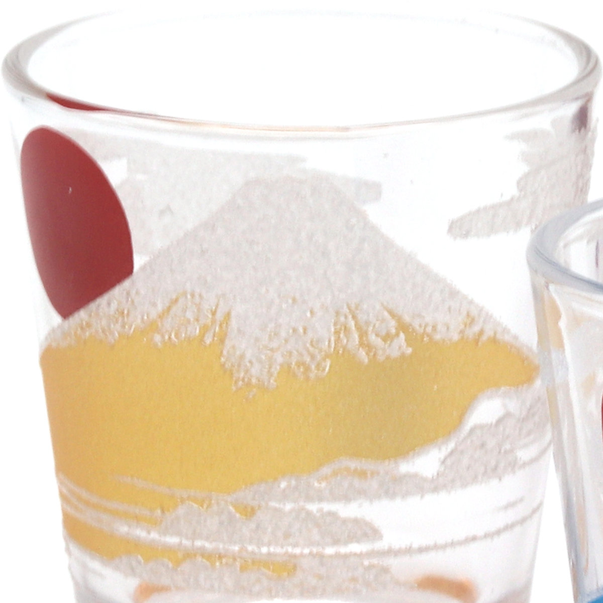 リキュール、焼酎、日本酒の少量ずつ飲みたいときなどにちょうどいいサイズ感です。富士山をモチーフにした和のテイストで飾っても美しい、使えるアートグラスです。