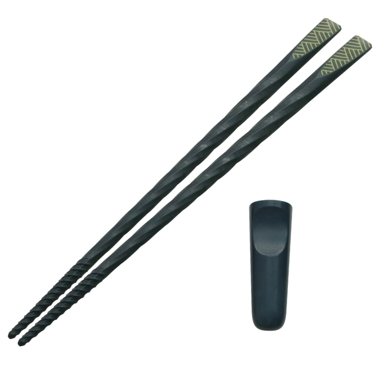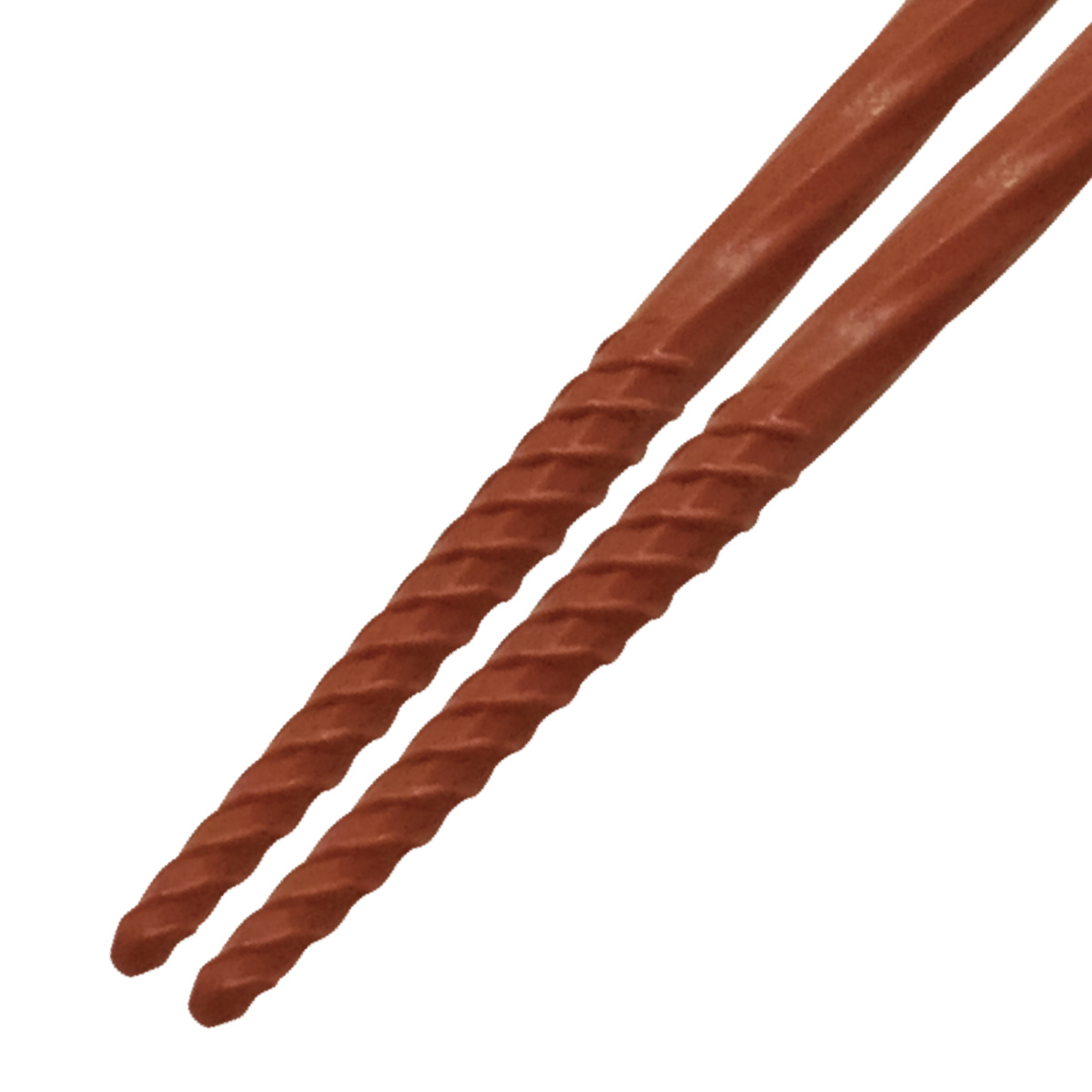 らせん状の溝が施された箸身は、手にしっかりとフィットし、滑りにくい仕様になっています。箸先にも同様の螺旋加工を施しているため、麺類や豆類などのつかみにくい食材も快適に扱えます。