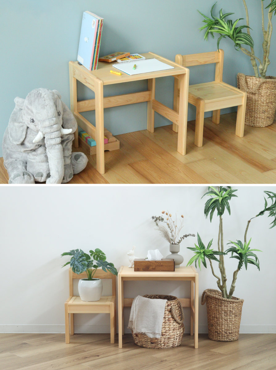 シンプルなデザインなので、お子さまが大きくなった後もサイドテーブルとして活用しやすく、長くご愛用いただけます。