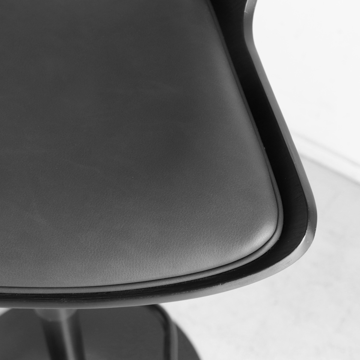| 材質 | 背もたれ:曲げ成型合板(ラッカー塗装) 張地:合成皮革(PU) 芯材:曲げ成型合板 中身:ウレタンフォーム 脚部:スチール(粉体塗装) |
