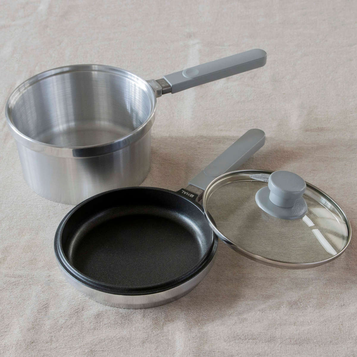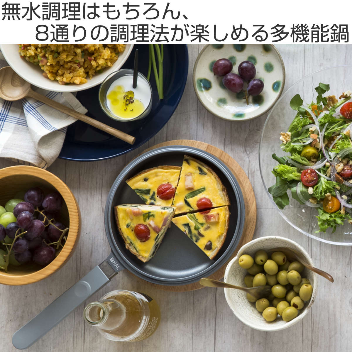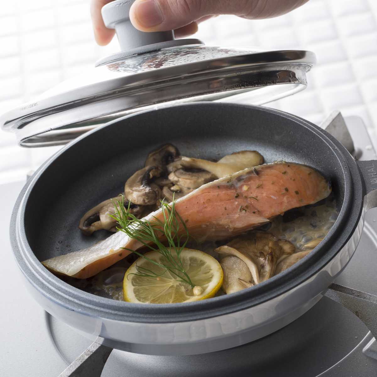 【浅鍋】【深鍋】【ガラス蓋】が1セットになったHAL片手無水鍋です。無水調理は余分な水を加えず、素材の水分で調理をします。旨みや栄養分がぎゅっとつまった素材本来の美味しさが味わえます。少量の調味料と短い時間で調理できるので、食費やガス・電気代の節約にもつながります。